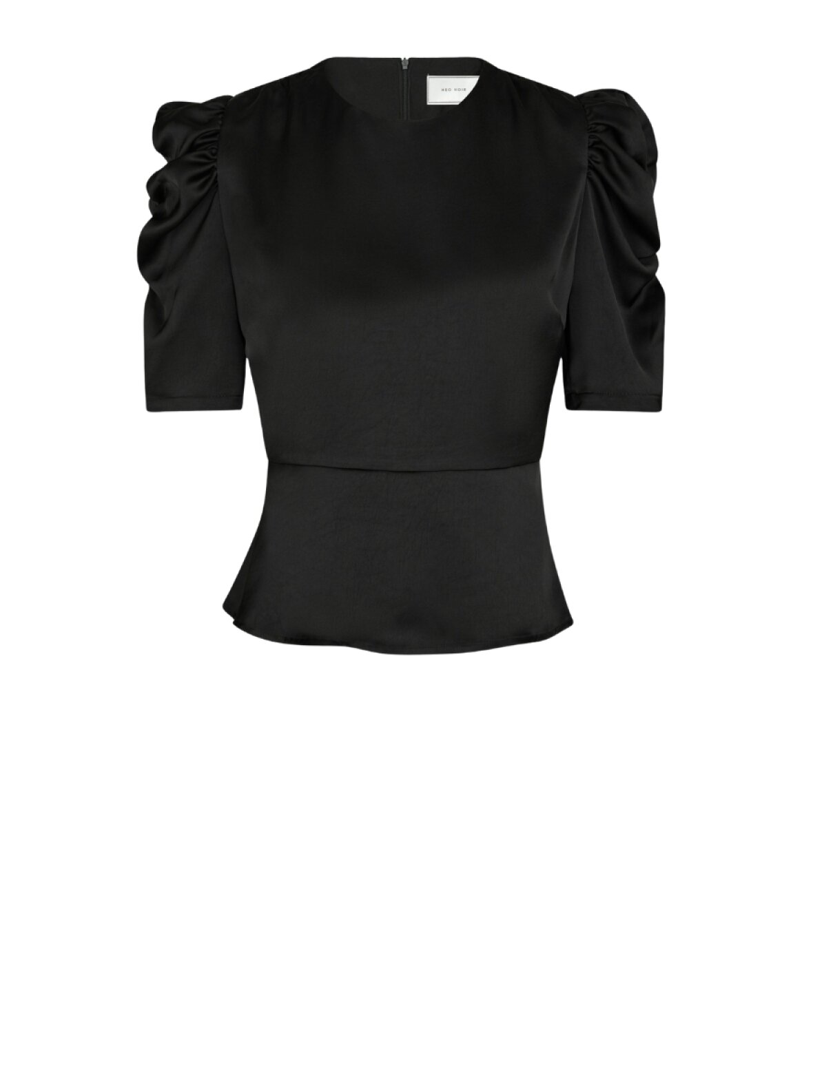 ❤︎ Skøn satin bluse fra Neo Noir med korte pufærmer. Benua Heavy Sateen blusen er designet med et indvendigt fastsyet lag og et figursyet snit i taljen. Blusen lukkes med lynlås i ryggen.