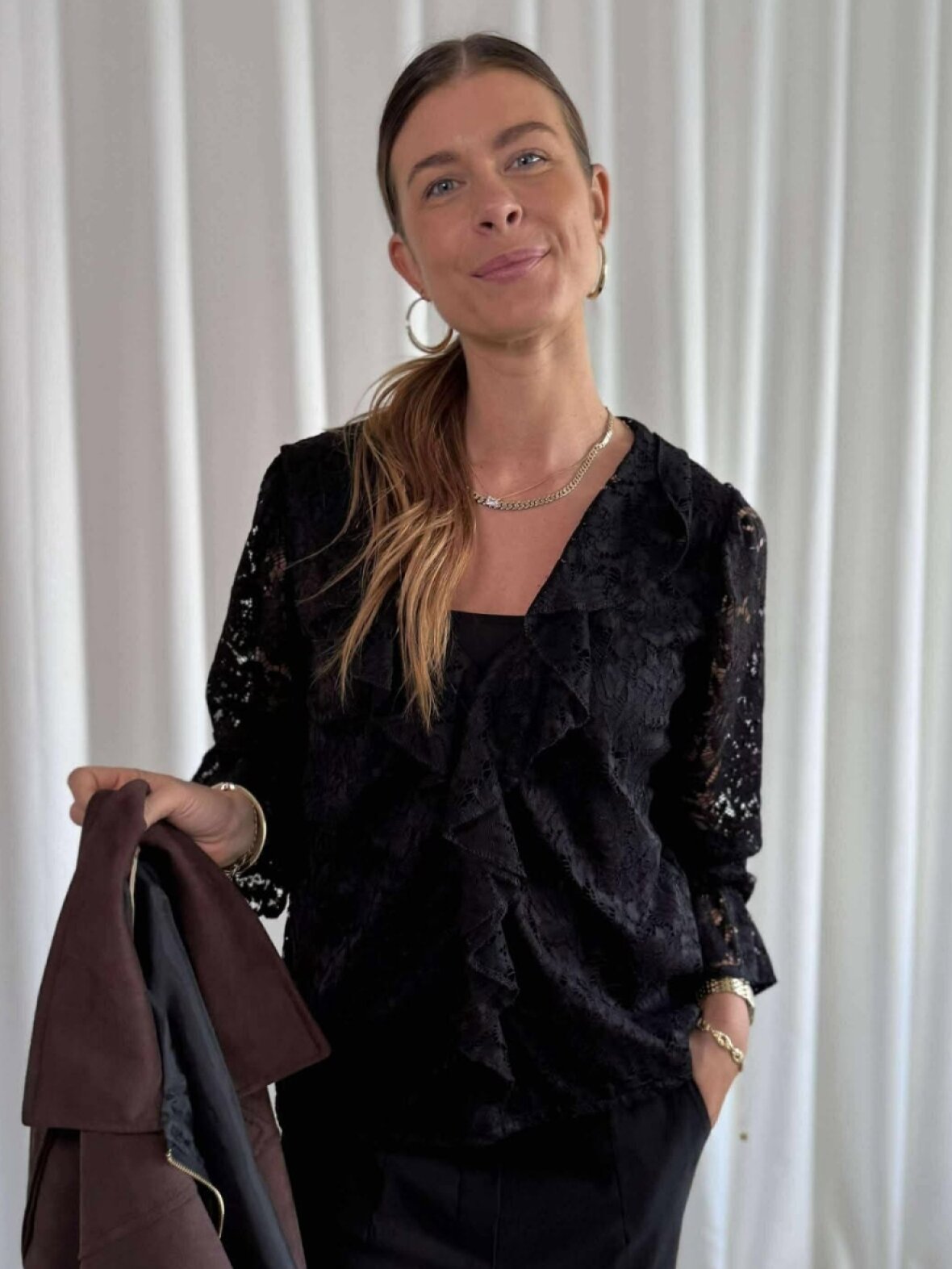 ❤︎ Flot blondebluse fra Marta med fine flæser. MdcZara blusen har lange ærmer og elastik ved håndleddet. Den har en fin v-udskæreing og en regulær pasform.