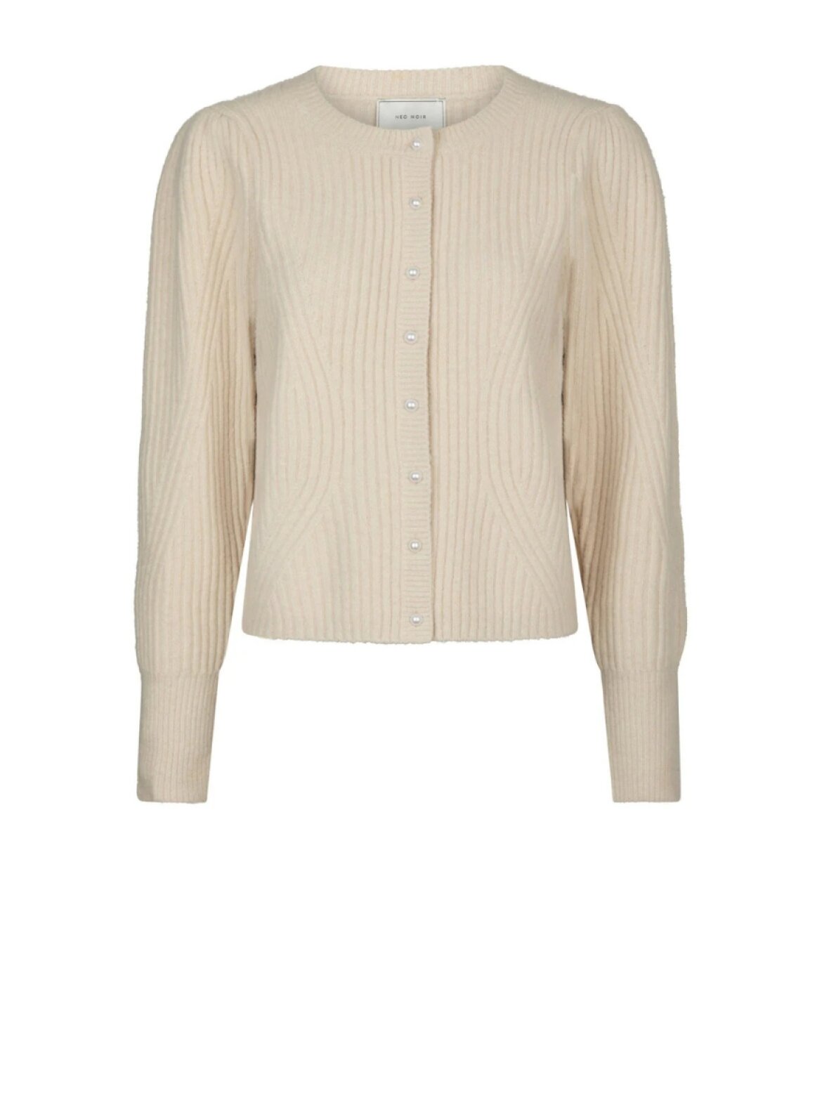 ❤︎ Lækker blød Neo Noir cardigan med knaplukning med fine perler, lange ærmer samt rynkedetalje ved skuldrene.