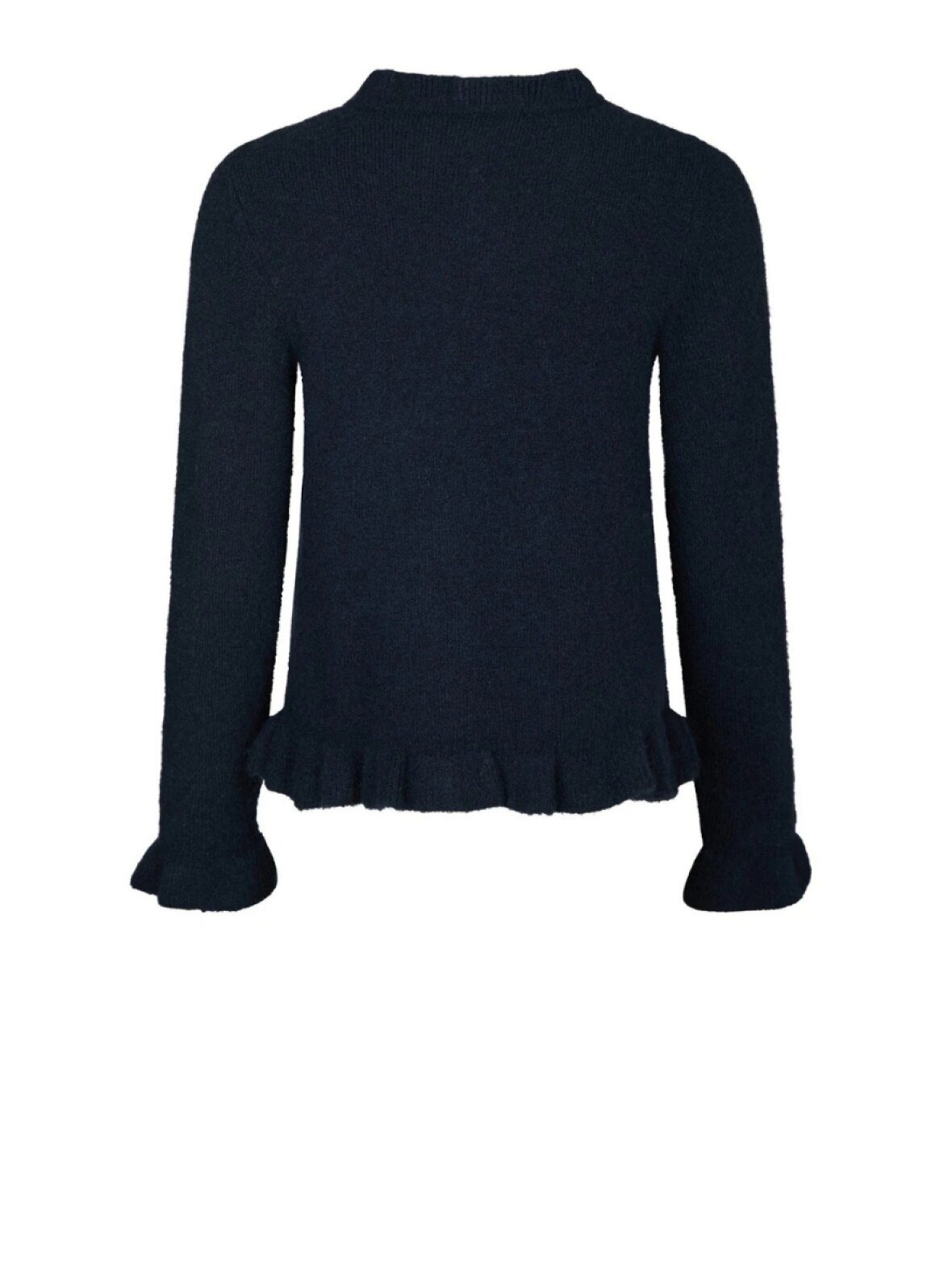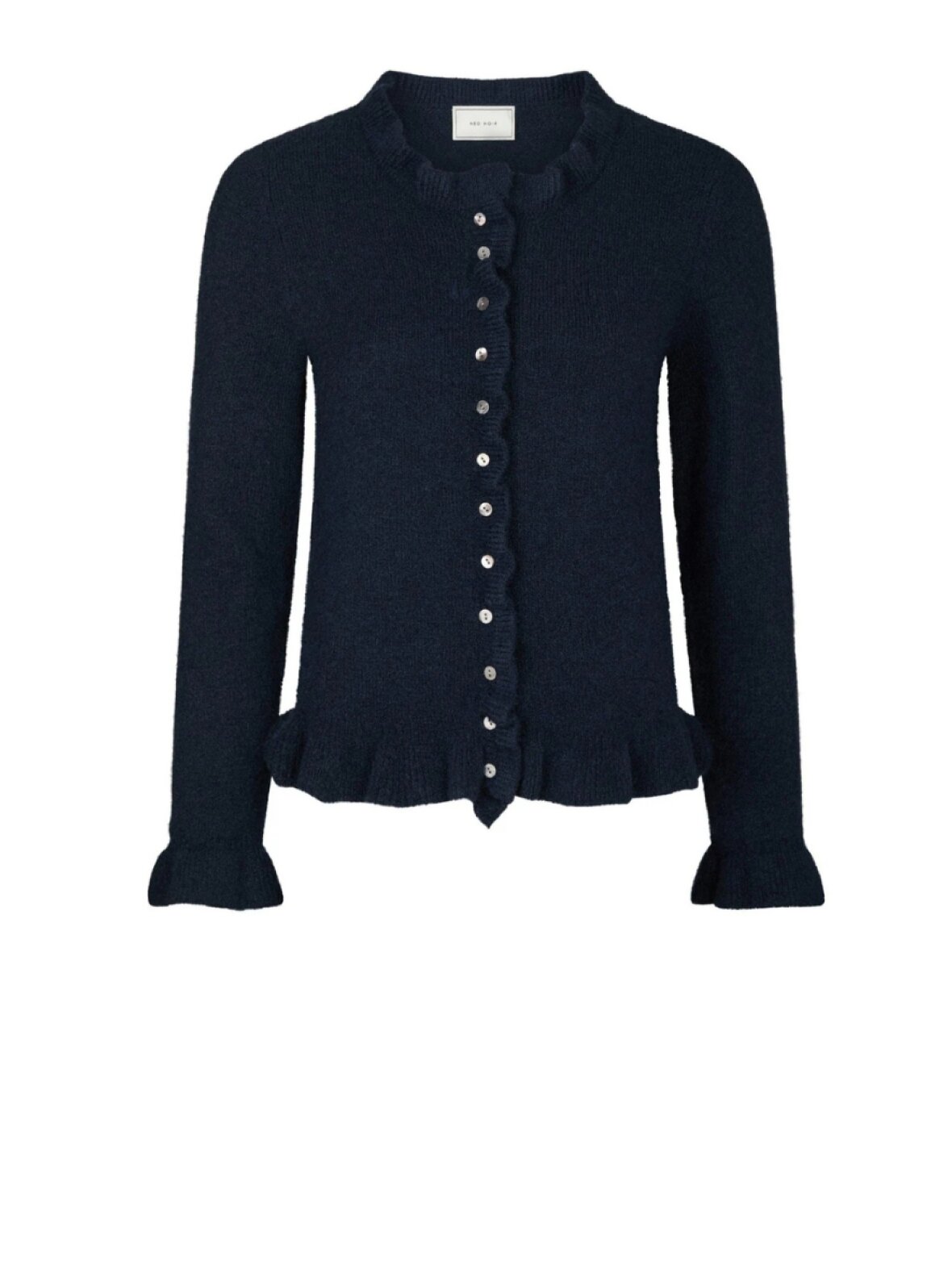 ❤︎ Kort, strikket cardigan med flæser fra Neo Noir. Cardiganen har en rund halsudskæring, lange ærmer og lukkes med knapper langs fronten. Den har flæser langs kanterne.