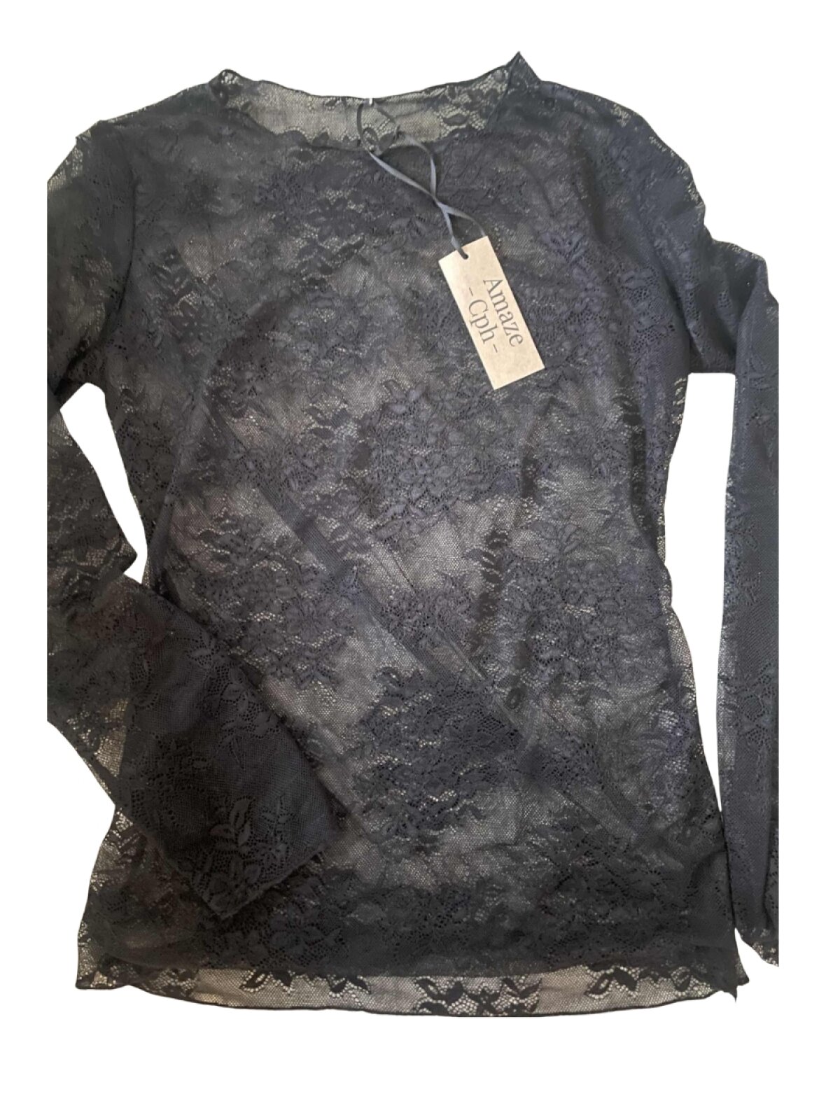 ❤︎ Skøn transparant blondebluse fra Amaze Cph. Blondie blusen har lange ærmer, en rund hals og en regulær pasform i strækbart materiale.