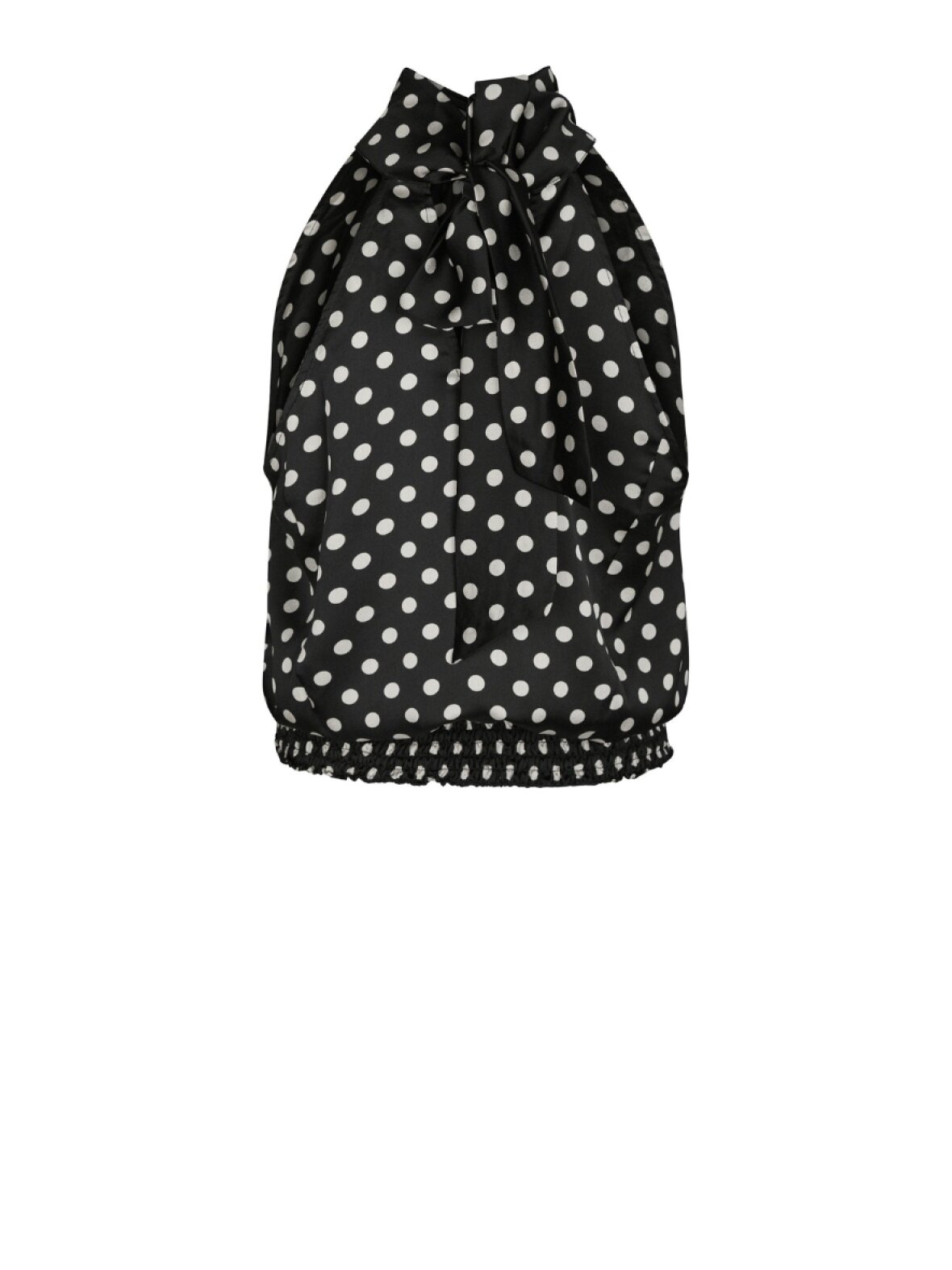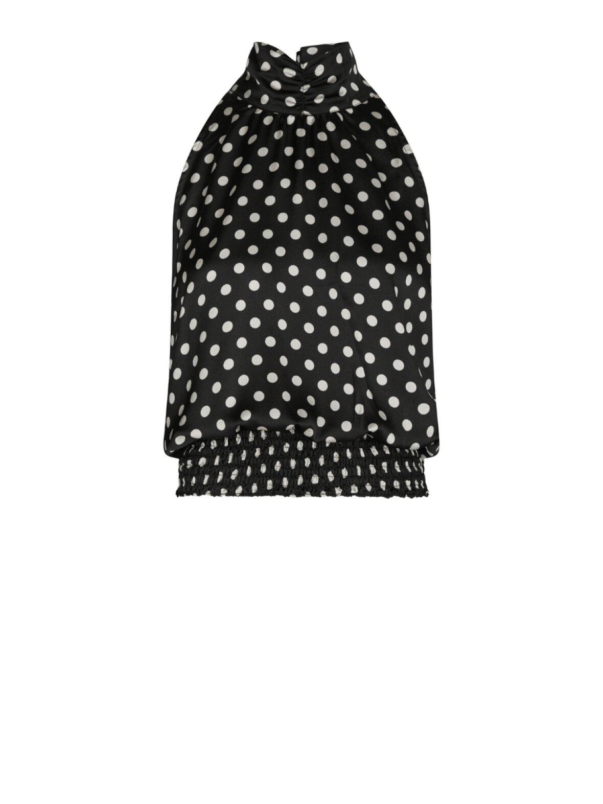 ❤︎ Smuk prikket top fra Neo Noir uden ærmer. Jos Dot toppen har smock i taljen og en flot halter neck, som bindes i nakken.