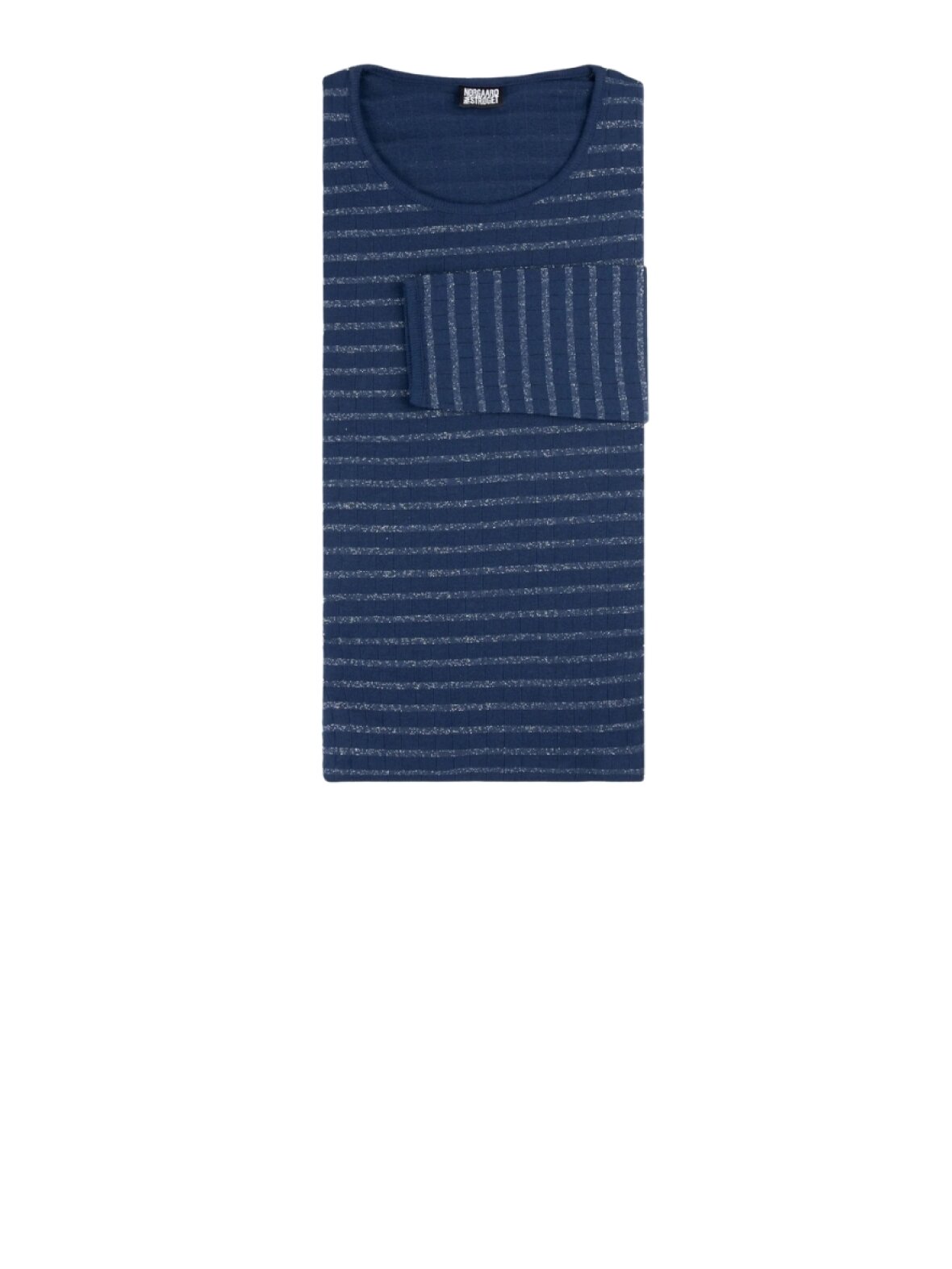 ❤︎ Den klassiske 101 Fine Stripe t-shirt med to tynde striber, tilføjet et smukt strejf af glamour med sine skinnende lurex striber. 101 T-shirten er onesize og i alle regnbuens farver. Skøn langærmet t-shirt fra Nørgaard paa Strøget i en lækker strækbar kvalitet.