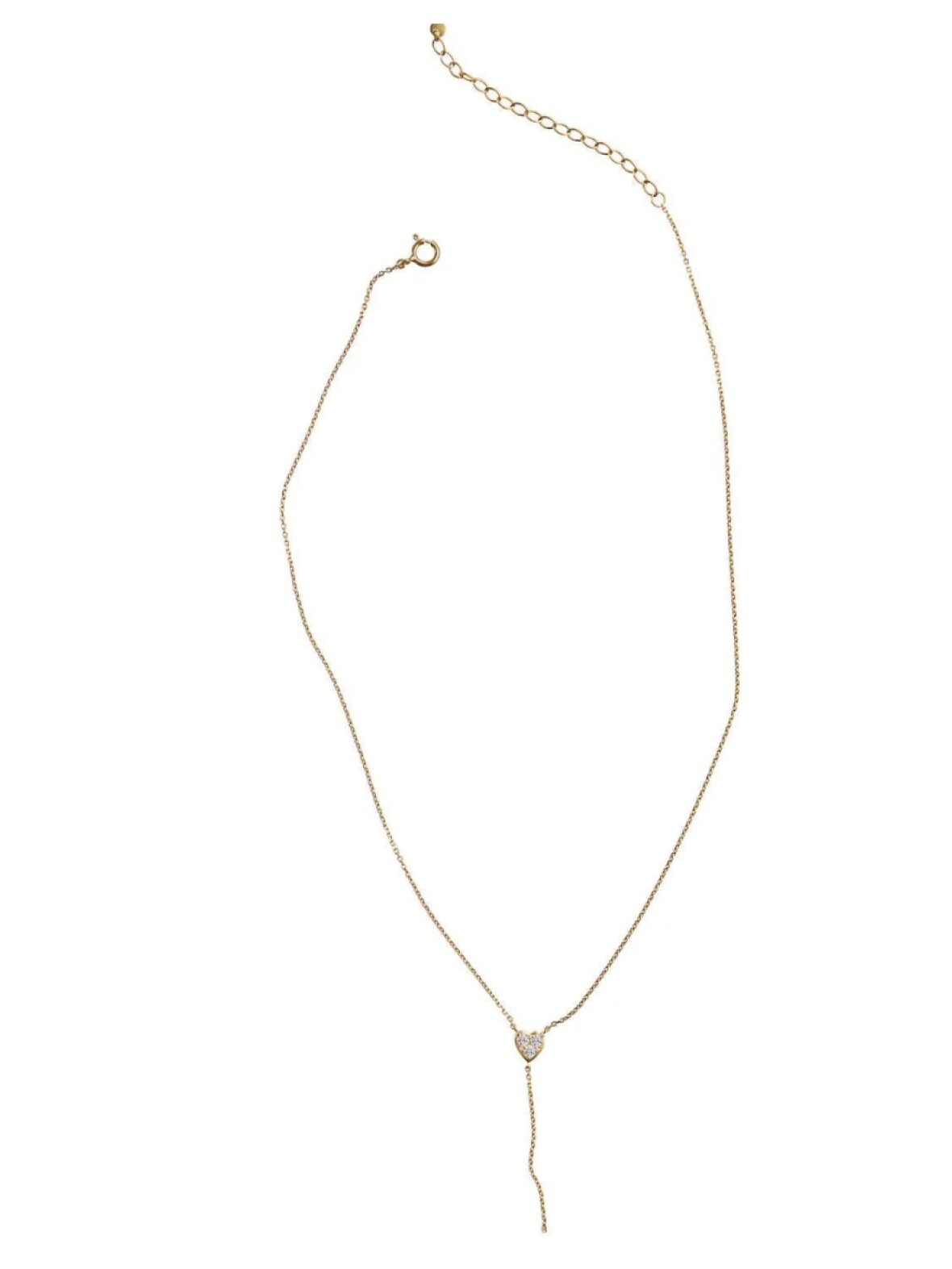 Smuk og elegant halskæde fra Stine A med hjerte med fine sten i, i den fine Y-form. Superfin guldbelagt kæde til både hverdag og fest.