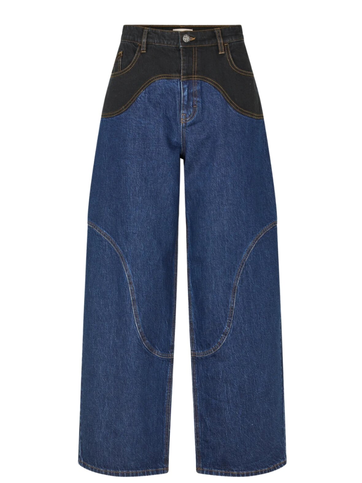 ❤︎ Super cool jeans fra Baum Und Pferdgarten. Napolen jeansene har seje kontrastsyninger samt mixet denim. De har en høj talje og er designet i en lækker afslappet pasform. De lukkes med skjult lynlås og knap.