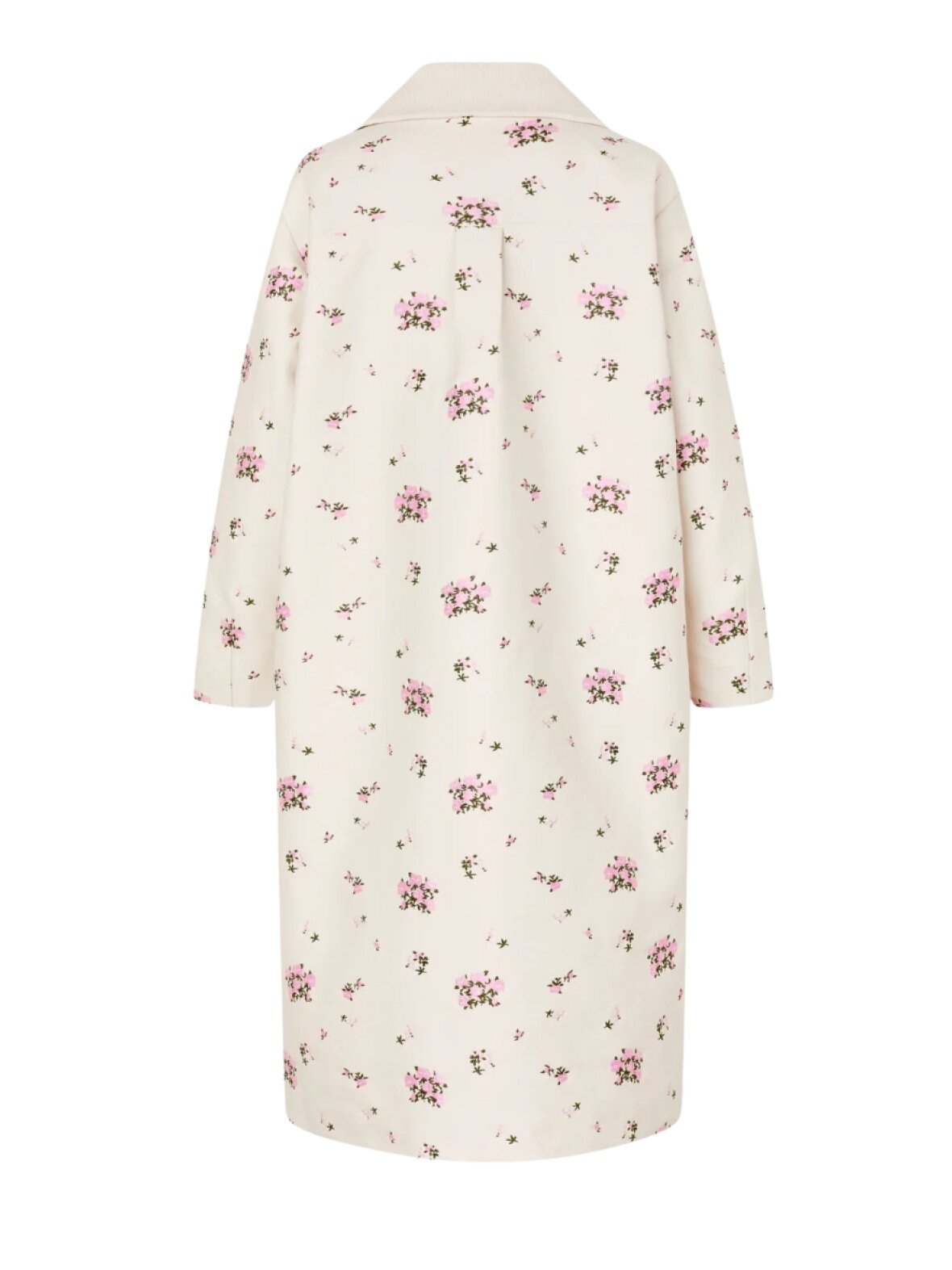 ❤︎ Smuk lang frakke fra Baum Und Pferdgarten med en cool rummelig pasform. Daisy frakken er designet med en fløjlskrave, flot blomsterprint og lange brede ærmer. Den har to lommer og lukkes med knapper foran.
