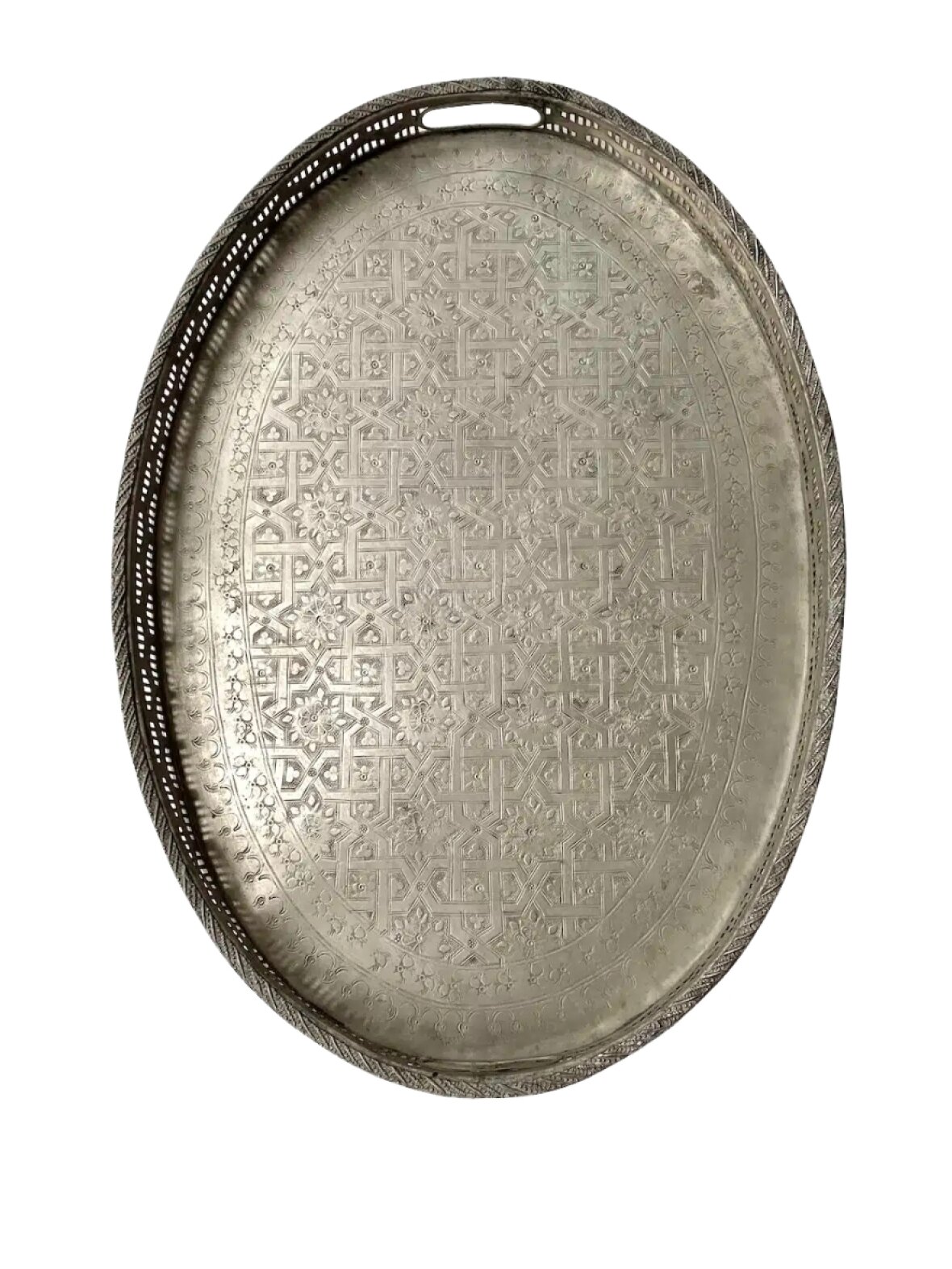 Dybt inde i Medinaen i Marrakesh er denne smukke, marokkanske vintagebakke fundet. Mere end 60 år gammel og fuld af historie og håndværkstraditioner. Denne bakke er et ægte UNIKA-fund: oval i formen, med sirligt udskårne håndtag og et indgraveret logo på bagsiden fra en anerkendt marokkansk håndværker.