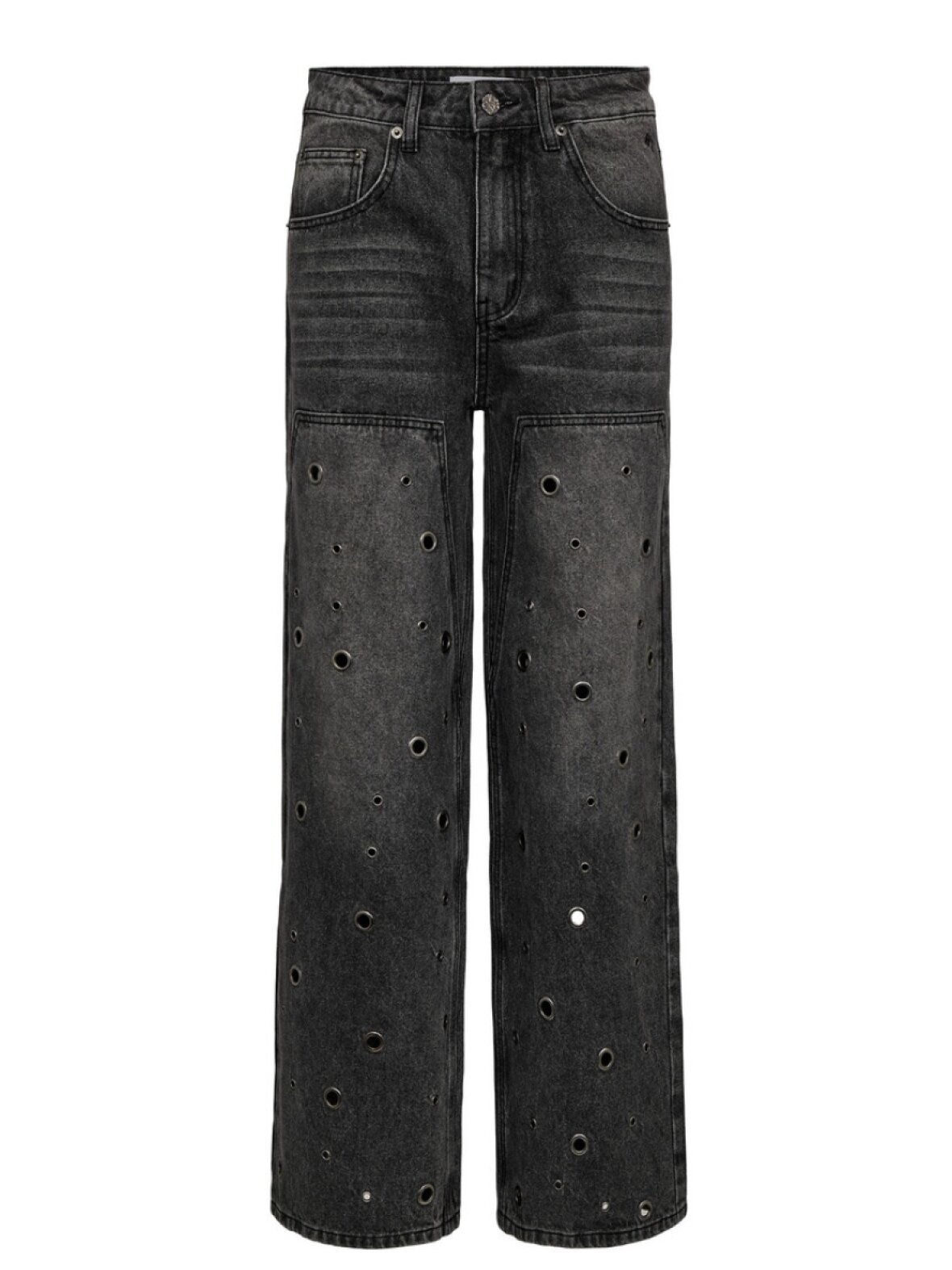 ❤︎ Cool jeans fra Haute L'amitié i et washed look og vidde i benene. Eyelet Patch jeansene er designet med seje huleffekter foran og klassisk 5-pocket. De lukkes med skjult lynlås og knap.