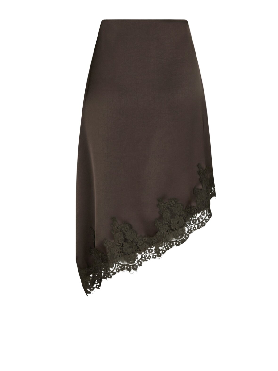 ❤︎ Smuk nederdel fra Neo Noir i blødt satin. Fiora Lace nederdelen har elastik i taljen, samt en smuk asymmetrisk blondekant nederst.