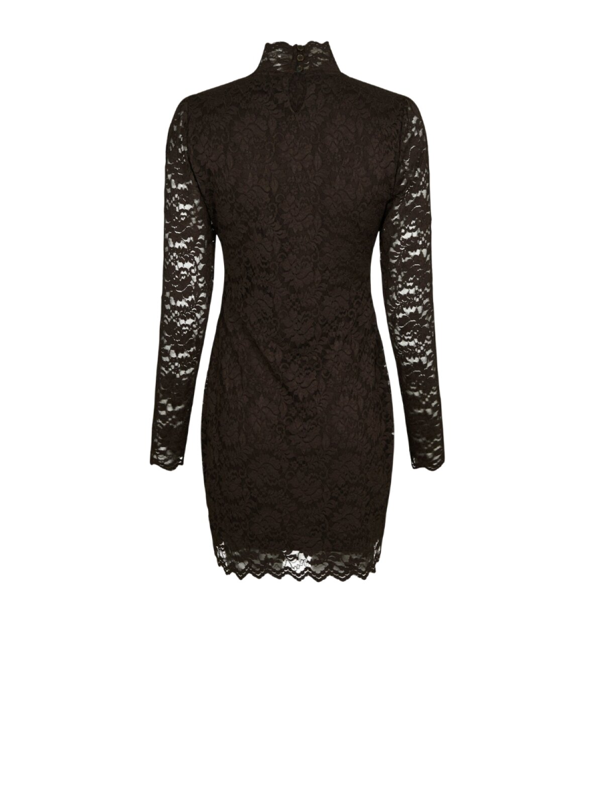 ❤︎ Smuk blondekjole fra Neo Noir med en flot tætsiddende pasform i strækbart materiale. Lizette Lazeflower kjolen har lange transparante ærmer, samt en høj hals, som lukkes i nakken med knapper. Indvendigt er en fastsyet underkjole.