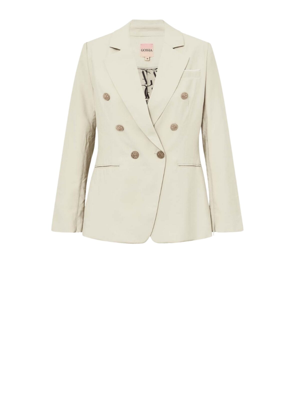 ❤︎ Smukkeste GOSSIA blazer med fine detaljer. Paula blazeren er designet i et regular snit med klassisk revers, dobbeltradet knaplukning, skulderpuder, samt smukke gyldne knapper. Som ekstra fin detalje har Paula blazeren en skjult lynlås på hvert ærme. evt. med den matchende Nimi vest og Katla buks for et fuldendt og stilfuldt look.