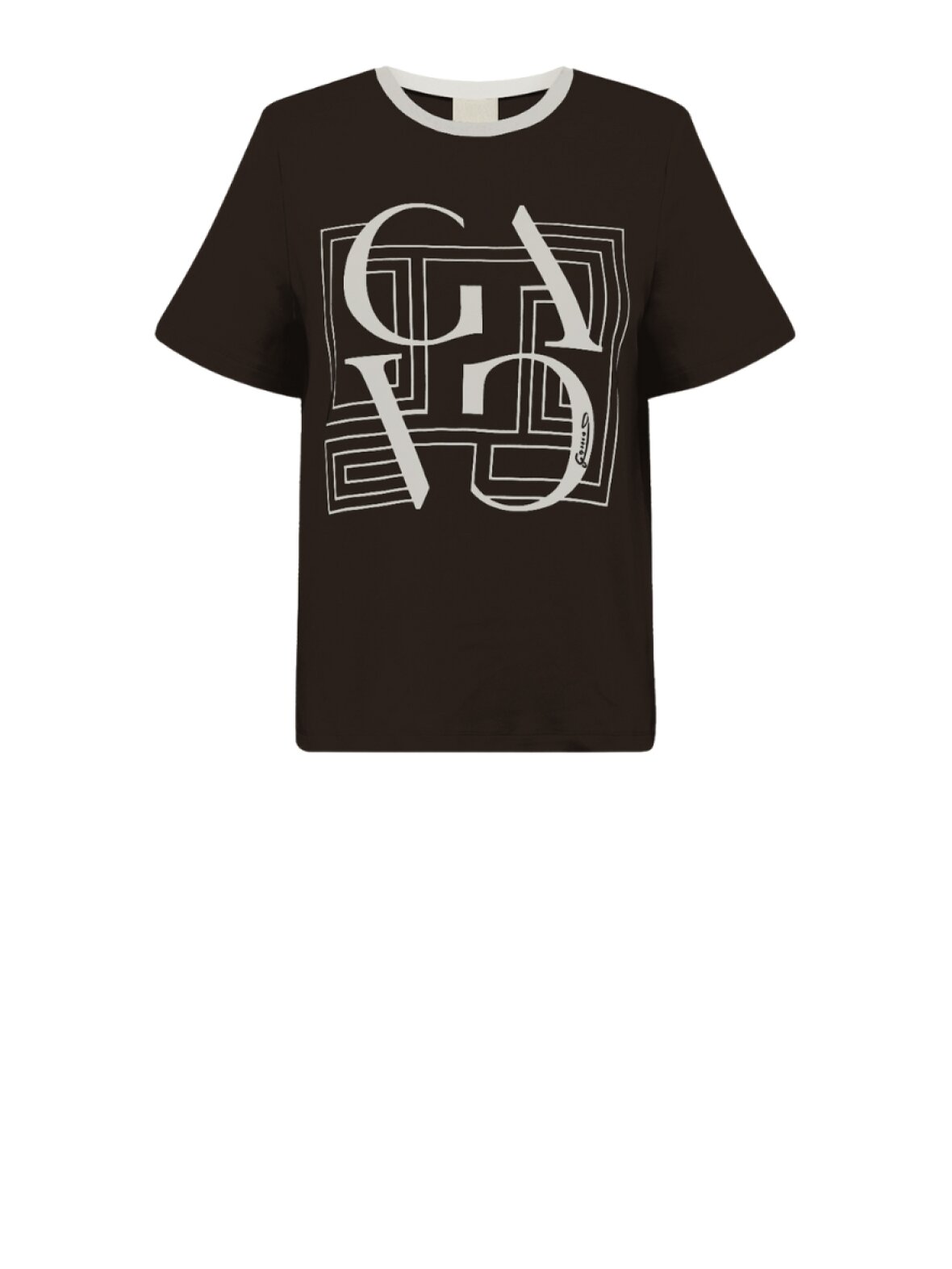 ❤︎ Super blød t-shirt fra Gossia med korte ærmer. BasGO t-shirten har en regulær pasform og seje kontrastfarvede detaljer i ribhalsen og motivet foran.