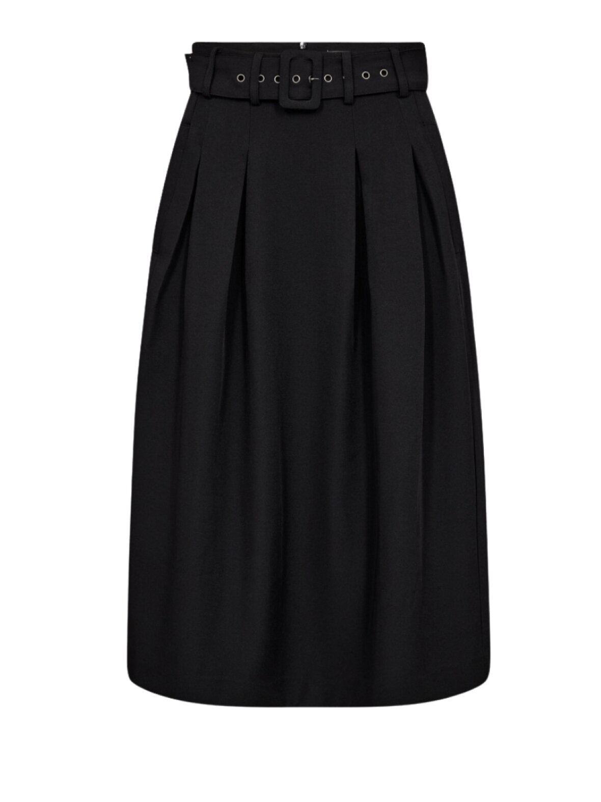 ❤︎ Smuk lang nederdel fra Co'couture med cool bredt bælte i taljen. LunaCC Belt Midi nederdelen har læg foran, som giver en fin plisse effekt. Den har lommer, vidde i skørtet og lukkes bagpå med lynlås.