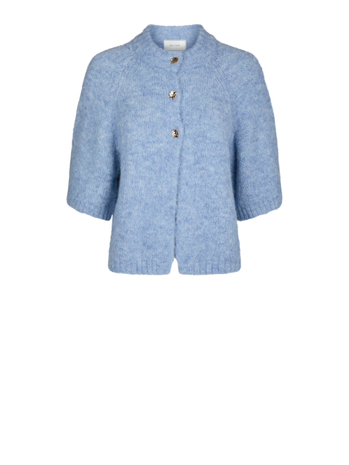 ❤︎ Smuk strik cardigan fra Neo Noir i skønt blødt materiale. Den har 3/4 ærmer, og en højere hals. Foran har den 3 fine guld knapper.