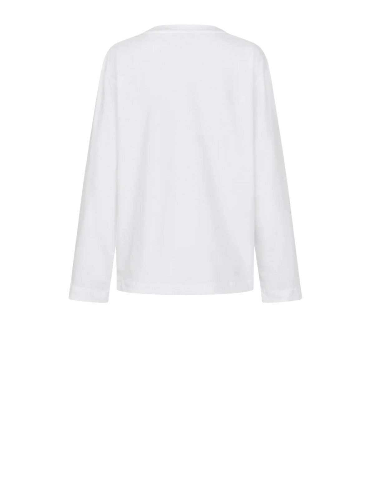 ❤︎ Cool langærmet t-shirt fra Baum Und Pferdgarten med et oversize box fit. Jeevona LS t-shirten har lange brede ærmer og rund ribhals. Foran på brystet har den et tone i tone logo.