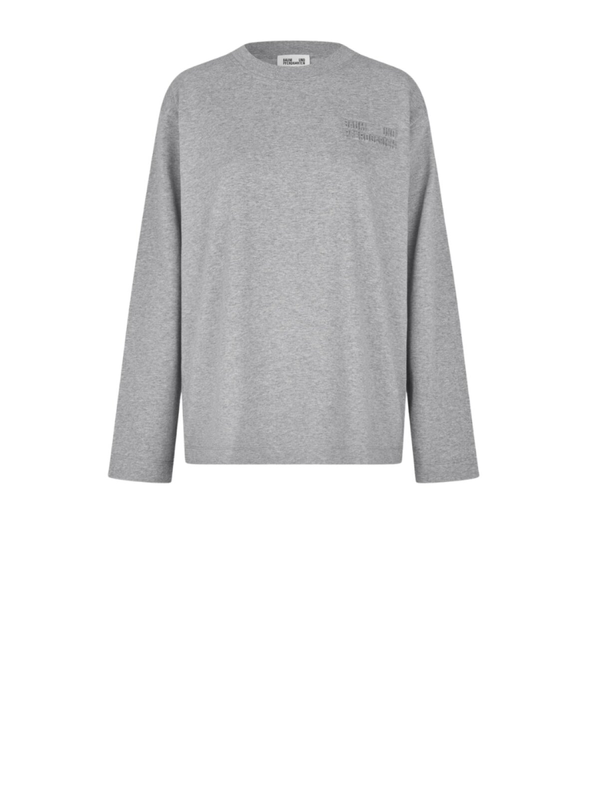 ❤︎ Cool langærmet t-shirt fra Baum Und Pferdgarten med et oversize box fit. Jeevona LS t-shirten har lange brede ærmer og rund ribhals. Foran på brystet har den et tone i tone logo.