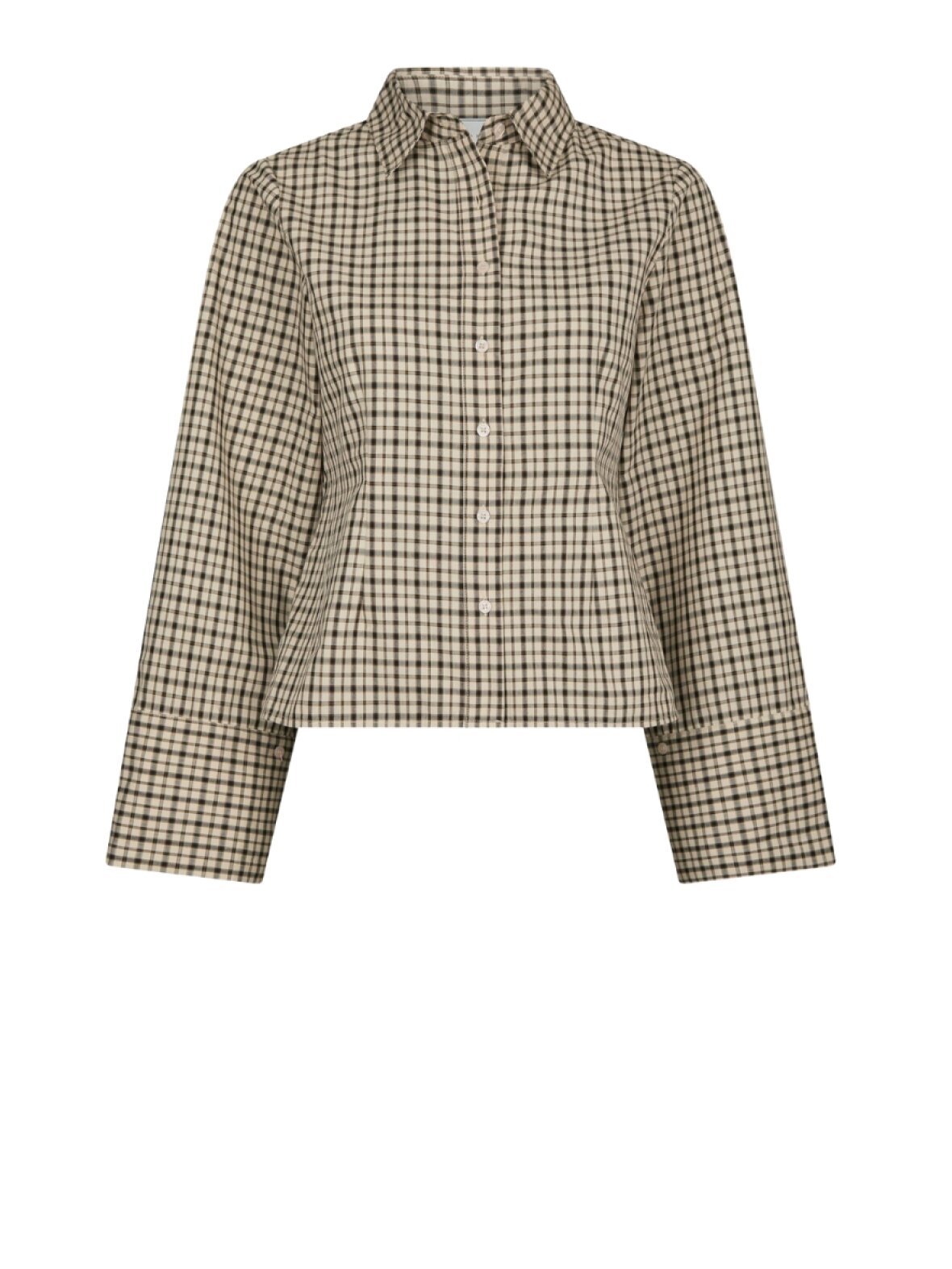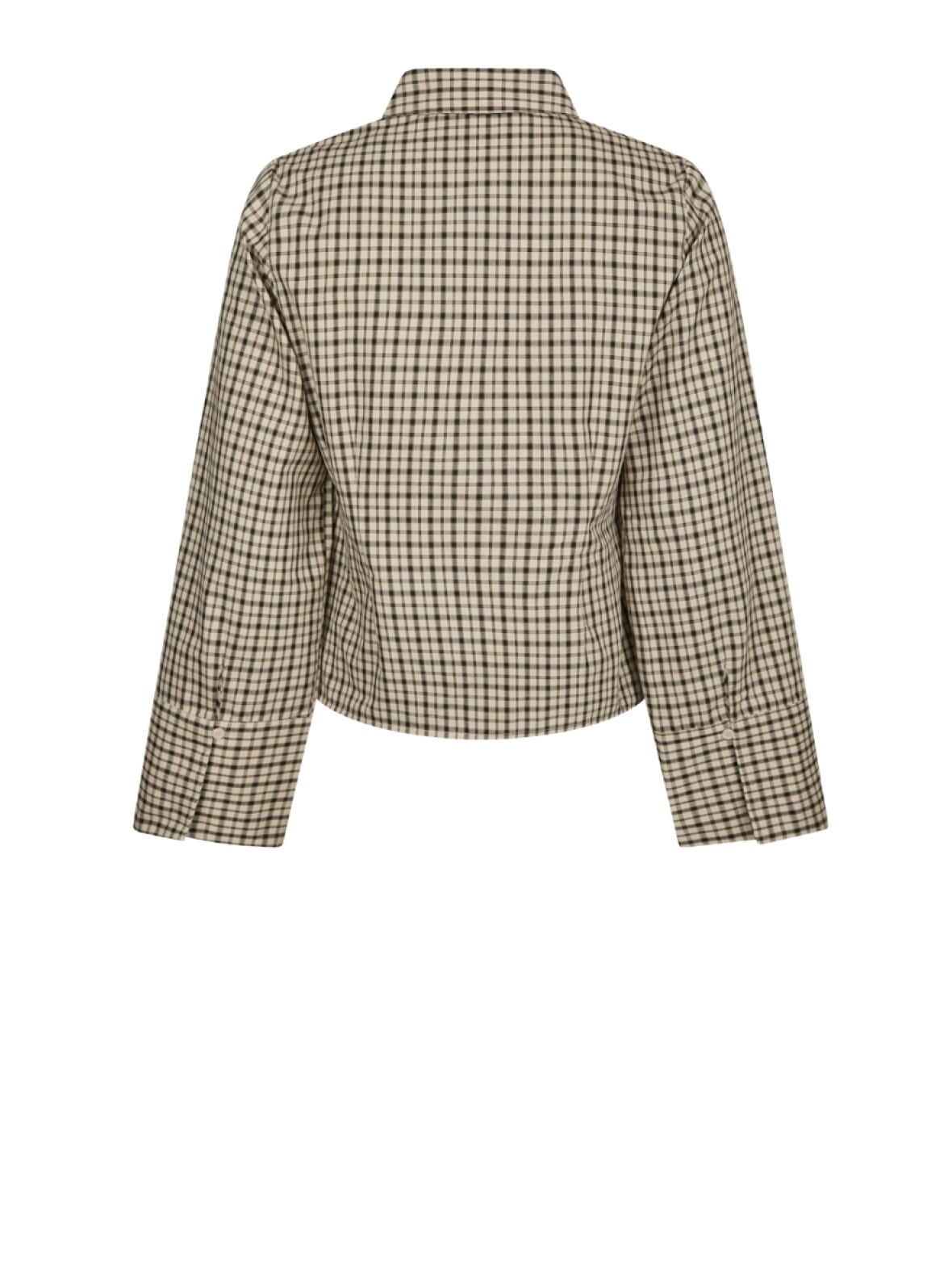 ❤︎ Skøn ternet skjorte fra Neo Noir. Skjorten har knaplukning foran, en almindelig skjortekrave og et lille læg foran i taljen, som giver den en fin og feminin pasform. Ærmerne er brede men kan justeres med knap, så du kan både få almindeligt smalt ærme, eller bred ærme.