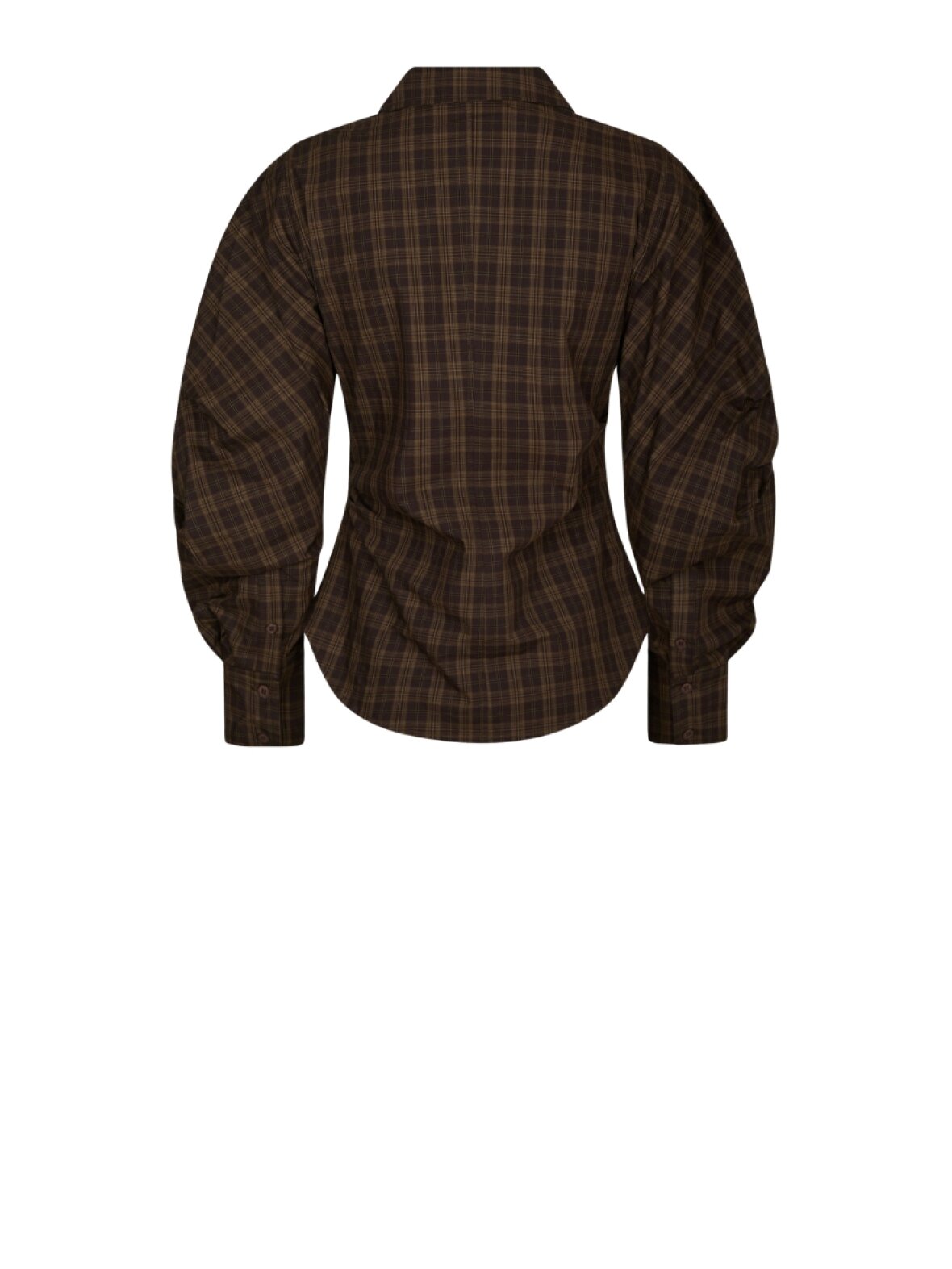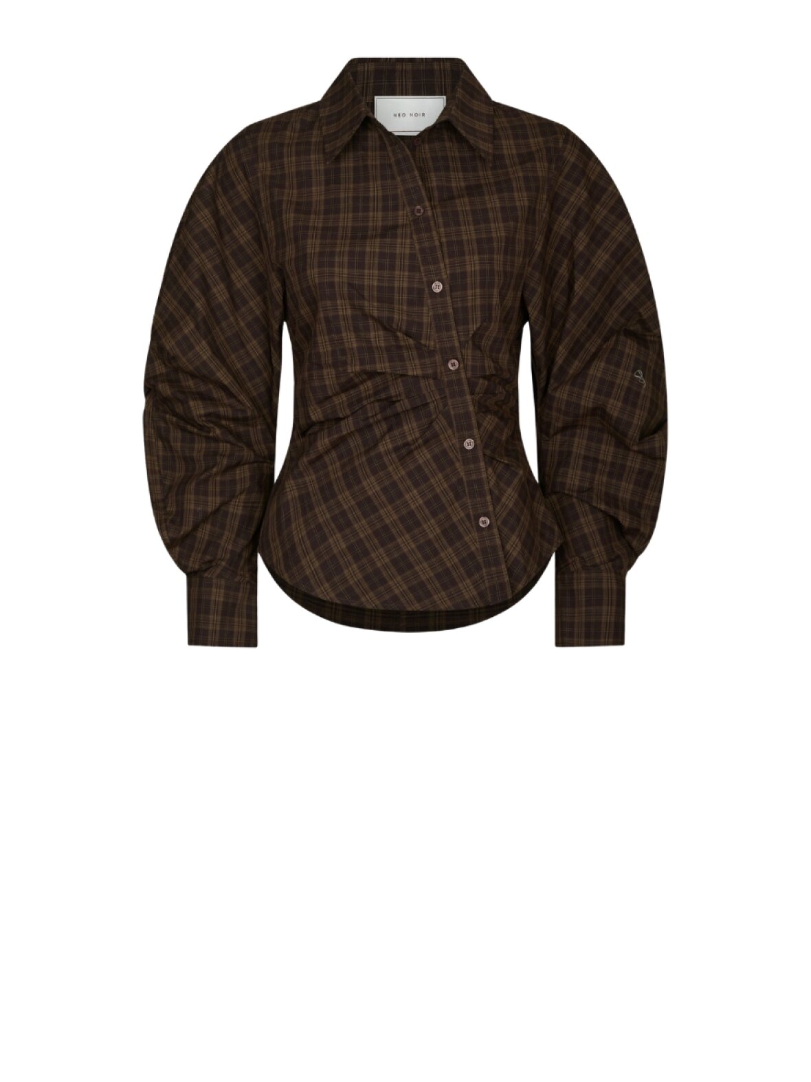 ❤︎ Skøn ternet skjorte fra Neo Noir med lange ærmer med rynkeeffekter. Skjorten har en assymetrisk knaplukning foran, en almindelig skjortekrave og et figursyet snit i taljen, som skaber en feminin pasform.