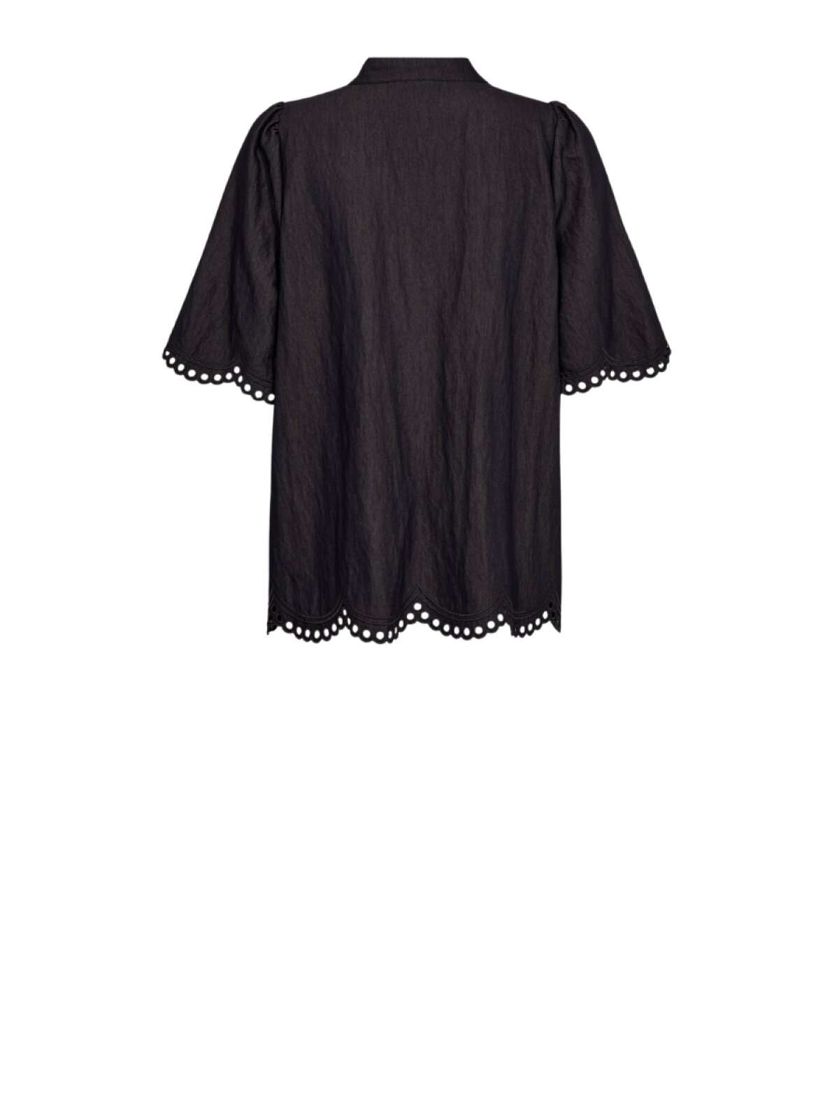 ❤︎ Skøn bluse fra Gossia i blødt materiale og med fine broderede detaljer i kanterne. MikaGO blusen har en rummelig pasform og løse korte pufærmer. En behagelig bluse med rund hals og synlig topknap, samt skjult knaplukning ned over brystet.