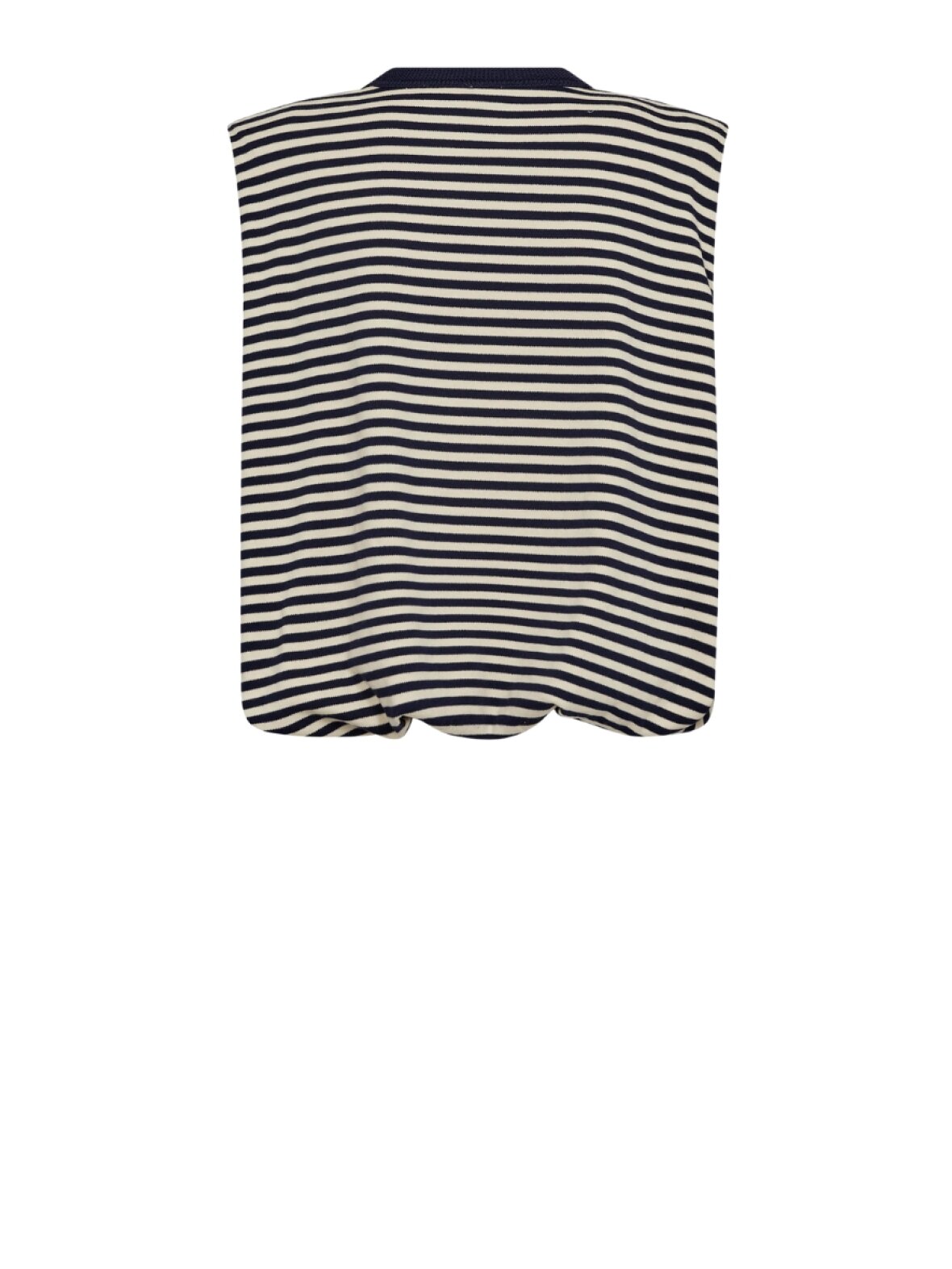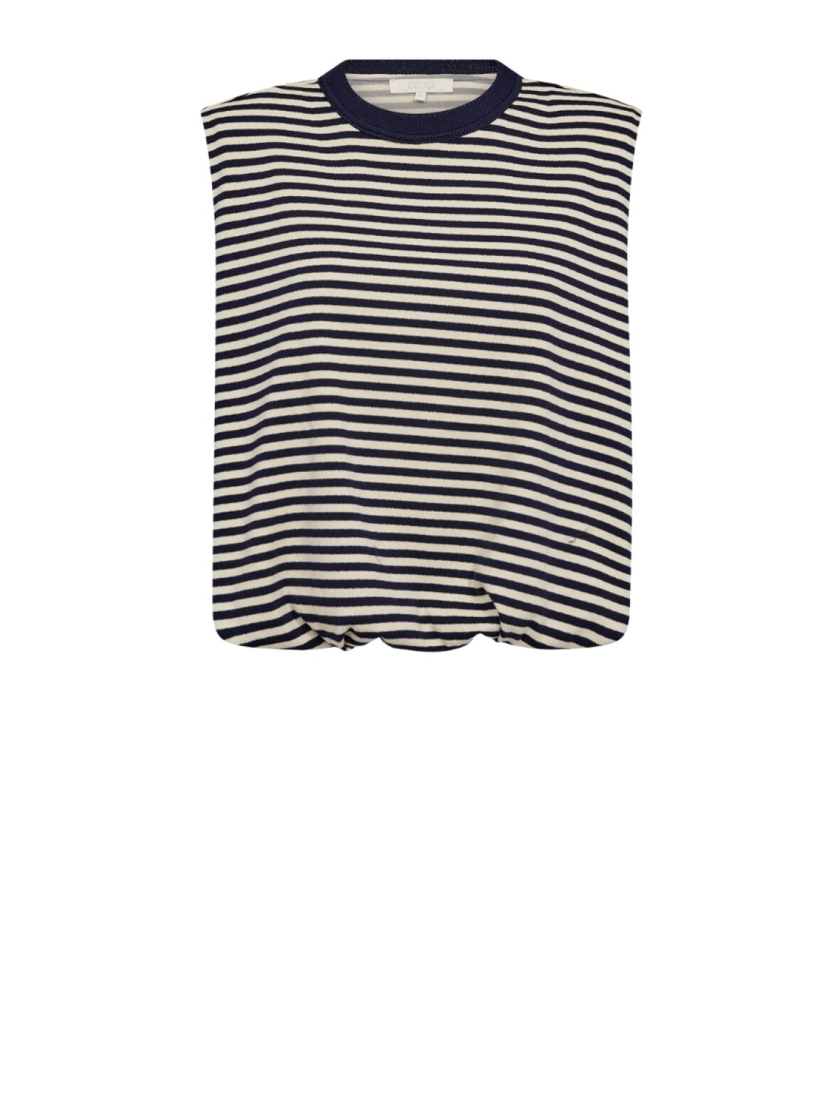 ❤︎ Cool stribet top med små skulderpuder fra Gossia. AnisaGO toppen har et løst rummeligt fit, dobbeltlag og elastik i bunden for at skabe ballon-effekt. Den fine top er i super blød bomuldsblanding, har ingen ærmer og en rund hals.