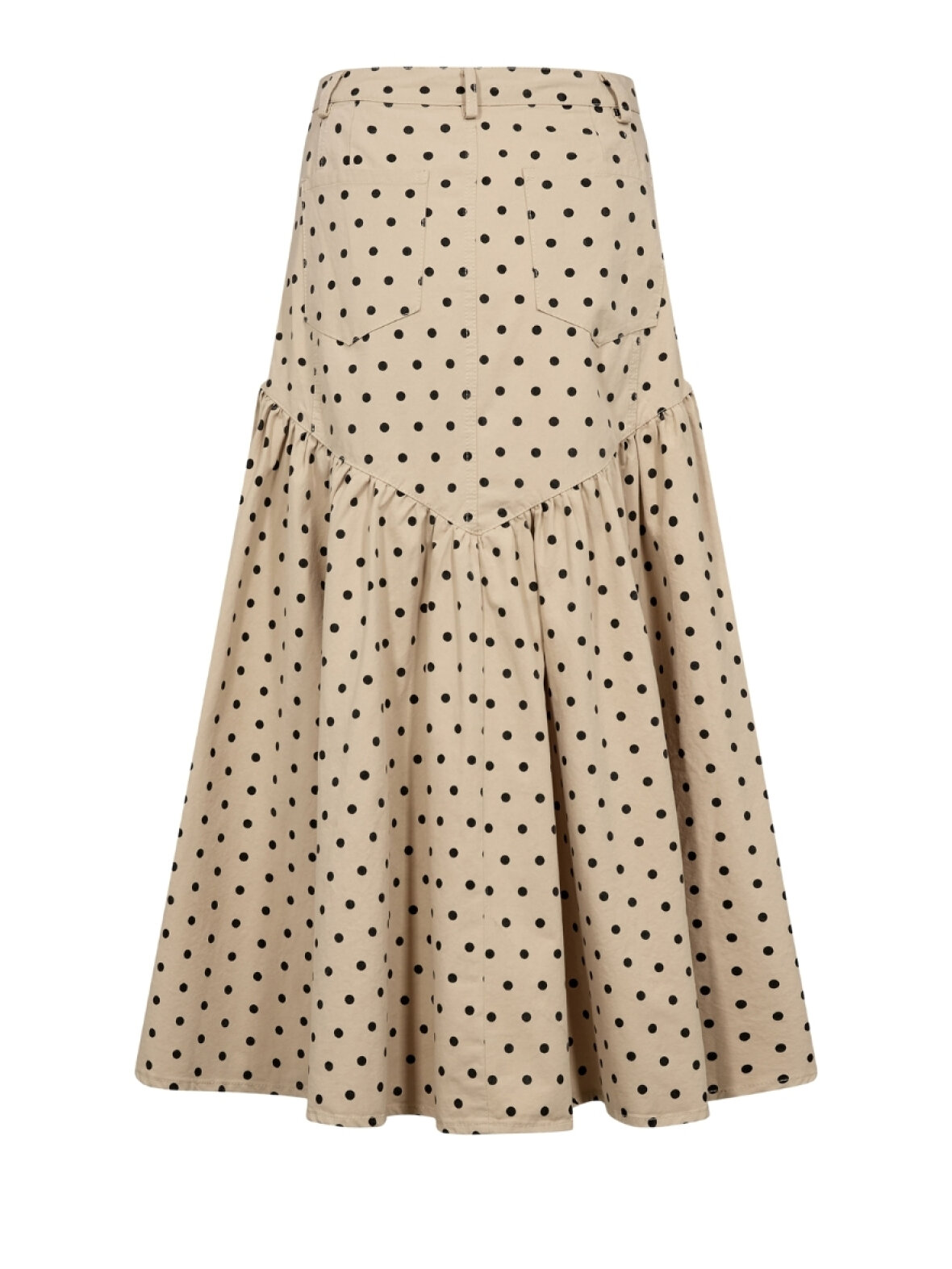 ❤︎ Super fin lang, prikket nederdel fra Gossia med forlommer og baglommer. SiljasGO nederdelen er gennemknappet foran, har bæltestropper og er tætsiddende i det øverste stykke og har vidde i den nederste del.
