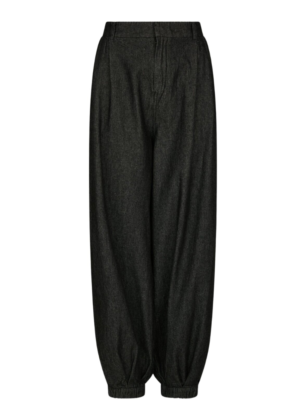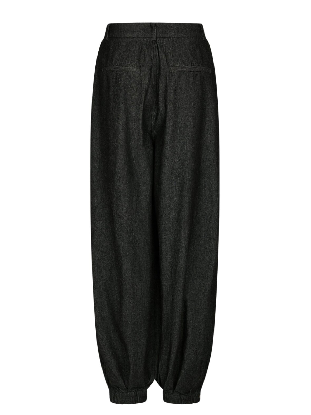 ❤︎ Skønne denim bukser fra Neo Noir med det trendy ballonfit. Fayla Denim Balloon bukserne har fine læg øverst og nederst ved anklerne. Den er designet med bæltestropper og sidelommer. De lukkes med skjult lynlås, en hægt og en knap.