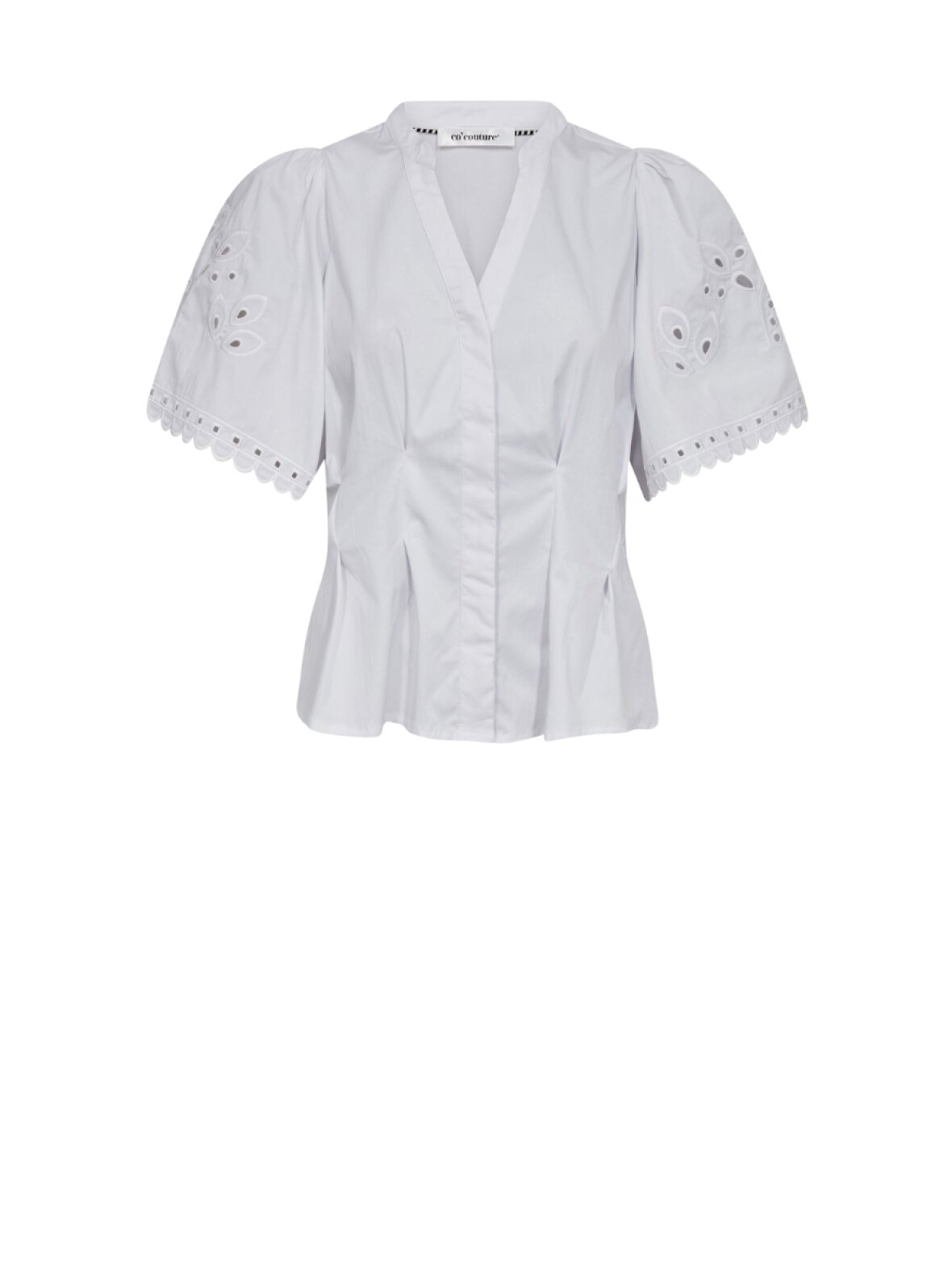 ❤︎ Skøn skjorte fra Co'Couture med flotte læg rundt i taljen, som skaber en flot figur. PoppyCC Emb SS V-skjorten har korte pufærmer med smukke broderede detaljer, samt en fin V-udskæring. Den lukkes foran med en skjult knaplukning.