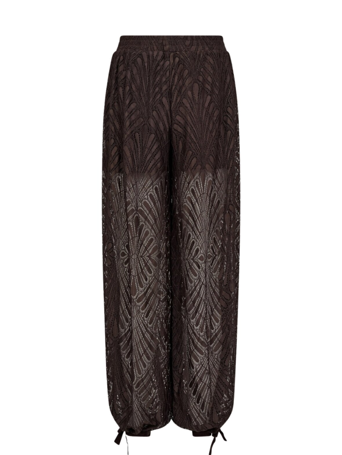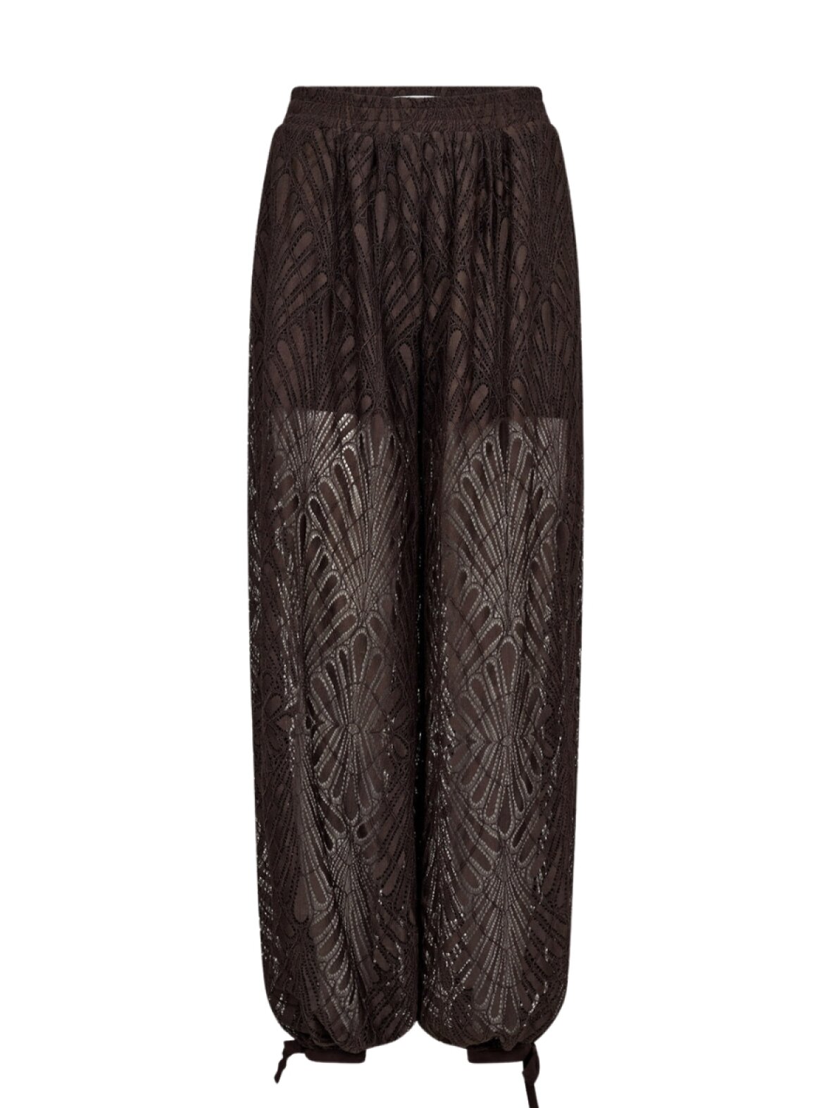 ❤︎ Smuk blonde ballon buks fra Co'couture. Skøn mørkebrune farve i smuk blonde kvalitet. Bindebånd i buksebens bund og lille slids. Har elastik i taljen og skrålommer.