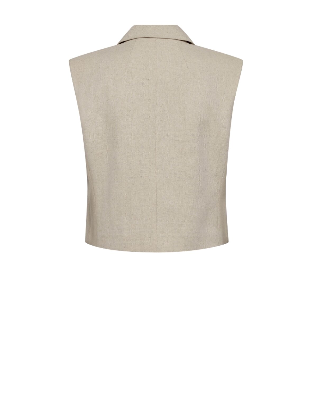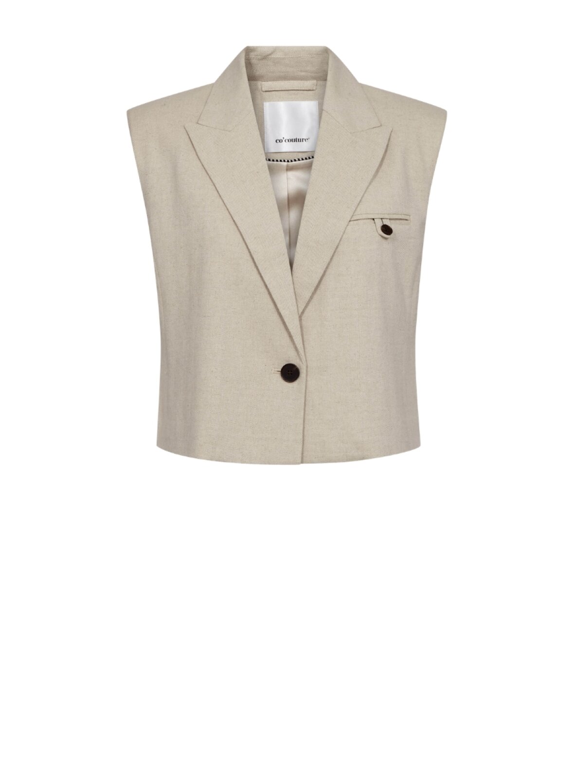 ❤︎ Skøn vest fra Co'Couture i en lækker kraftig hør/bomuld blanding. LeenaCC Linen vesten har lette skulderpuder, klassisk revers og et fint satinfoer. Foran lukkes den med en enkelt knap.