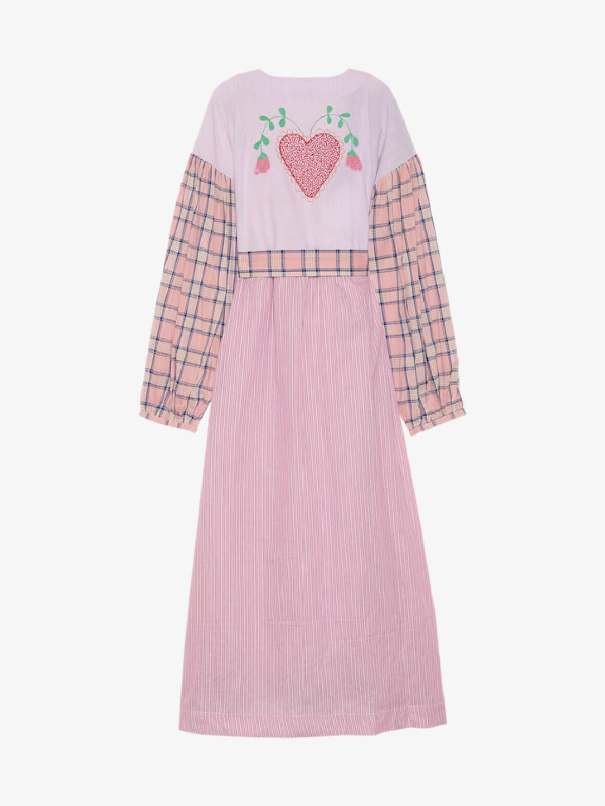 Kjolen er i de skønneste lyse forårsfarver og hånddekorerede perler og broderi detaljer gør kjolen ekstra feminin og unik.