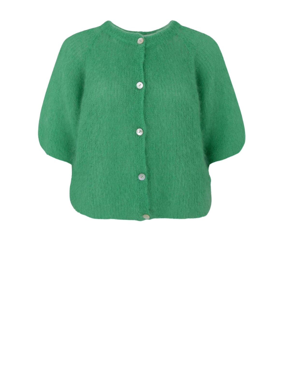 ❤︎ Skøn kortærmet strik fra Black Colour i super blødt materiale. BCBjoerk Patent Knit cardiganen har en rund hals, en løs pasform og lukkes med knapper foran.