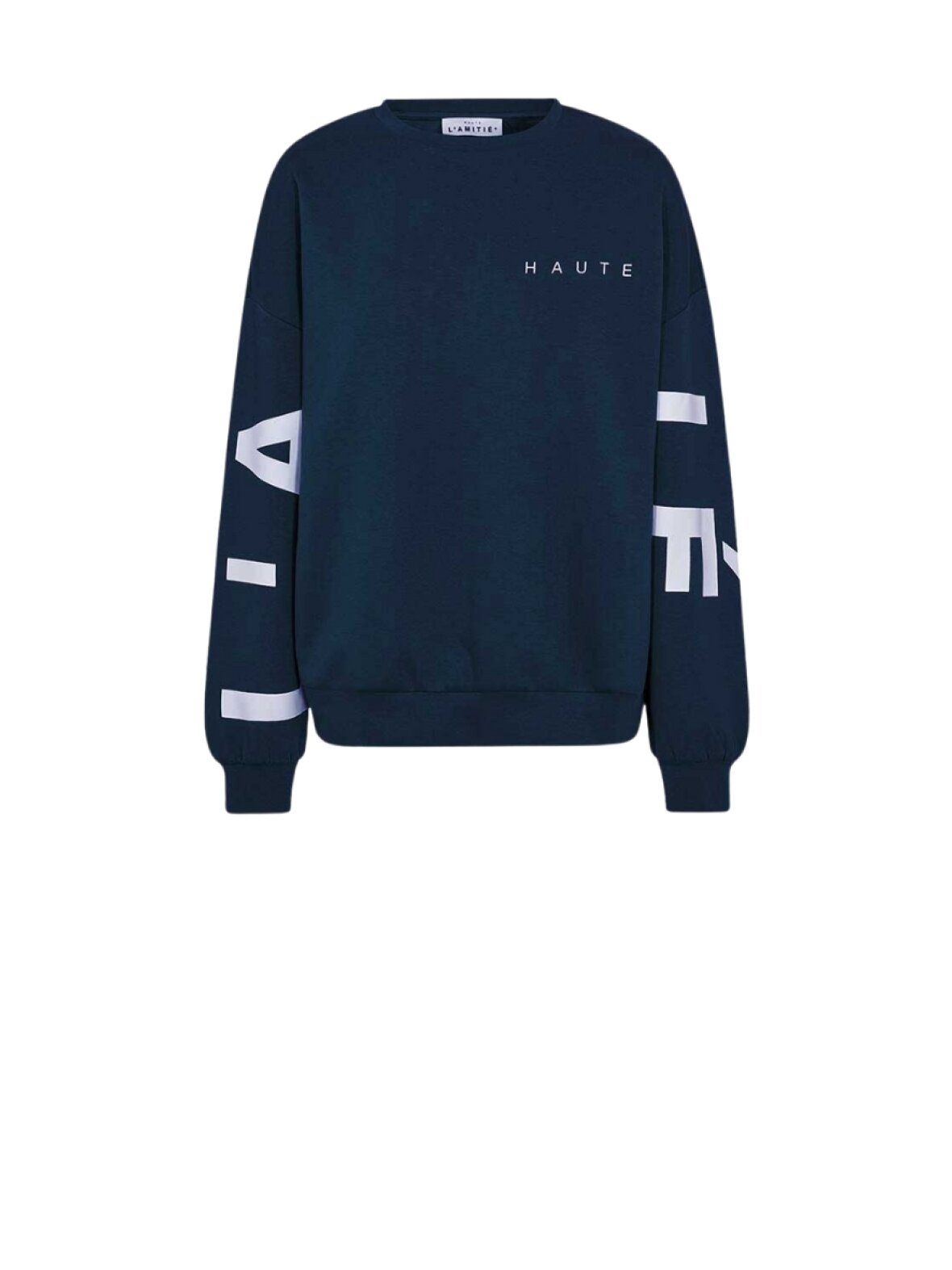 ❤︎ Super blød sweatshirt fra Haute L'amitié med cool oversize pasform. Maxi Split Logo sweat har lange ærmer, end rund hals og seje logo tryk i kontrastfarve.