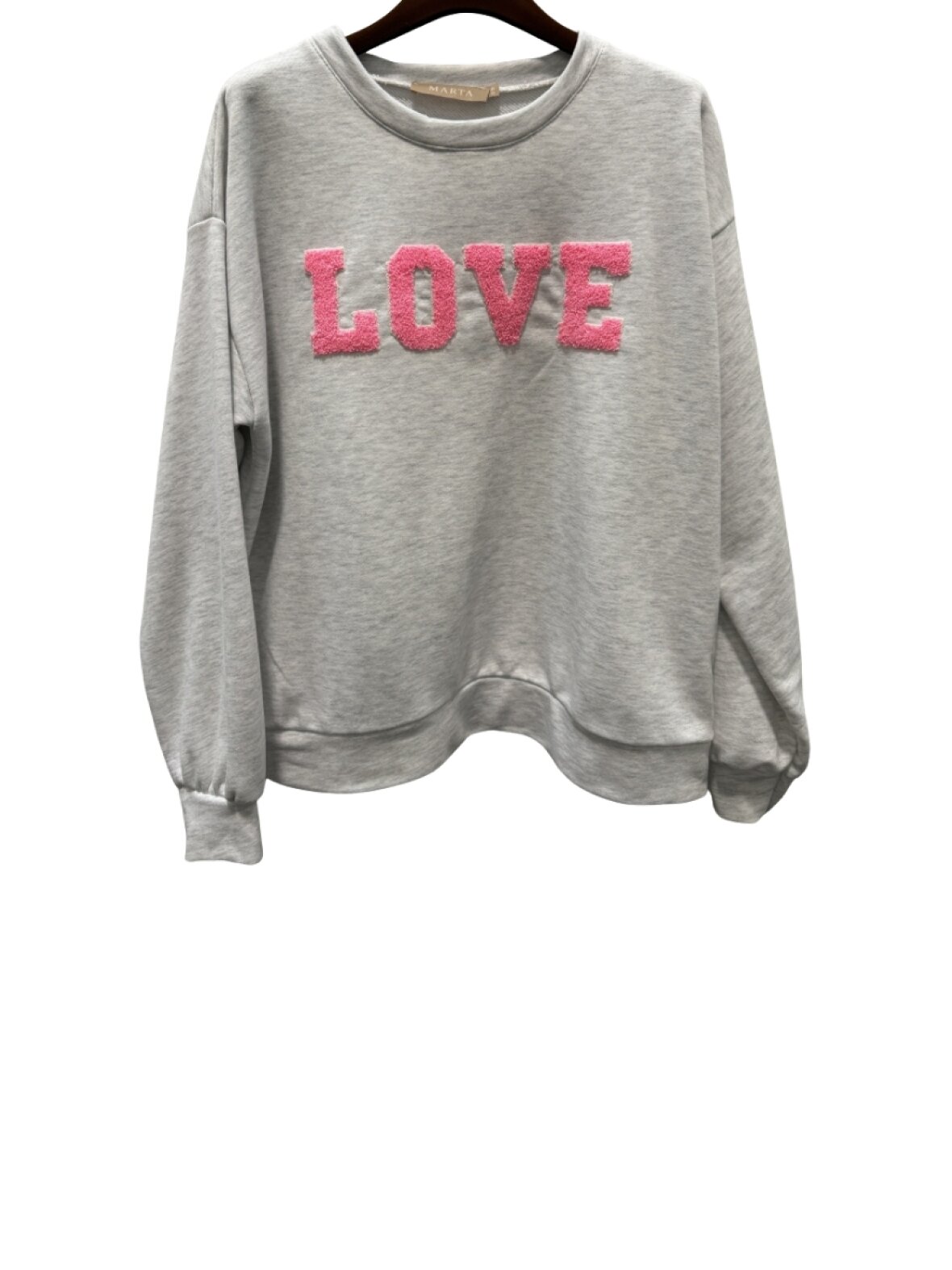 ❤︎ Super blød sweatshirt fra Marta. MdcJessa sweatshirten har en løs pasform, lange ærmer og en rund hals. Foran er den designet med kontrastfarvet skrift i frotté.