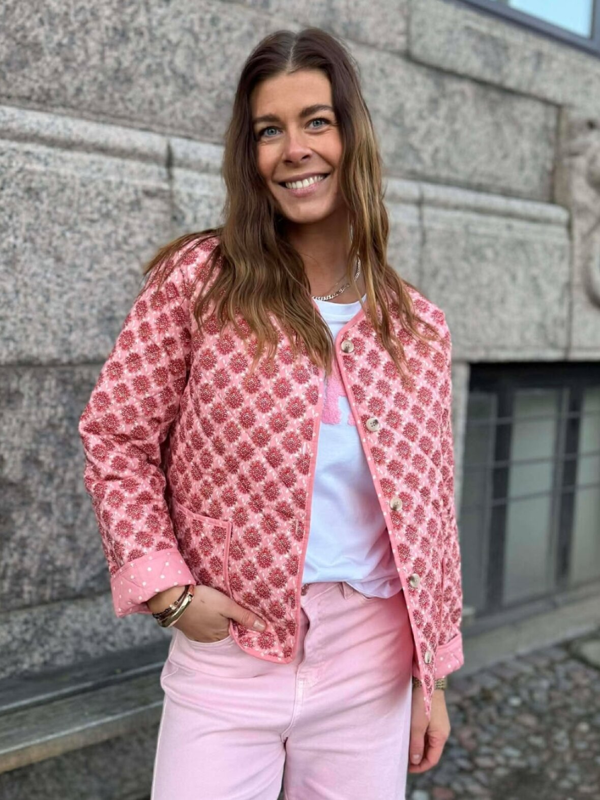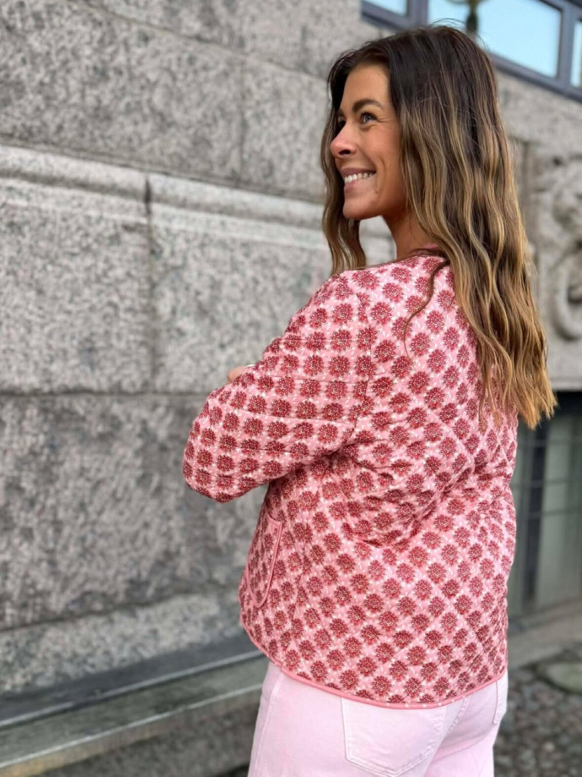 ❤︎ Super fin kviltet jakke fra Marta med smukt blomsterprint. MDCAvril Jacket er designet med rund hals, to frontlommer og lukkes med smukke knapper foran.