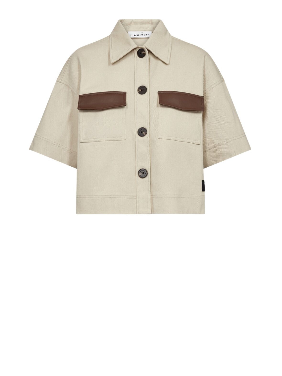 ❤︎ Super cool skjorte fra Haute L'amitié med korte ærmer. Bowie Crop Pocket skjorten har et lækkert cropped box fit og brystlommer med seje kontrastfarvede klapper. Den har en klassisk krave og lukkes med store knapper foran.