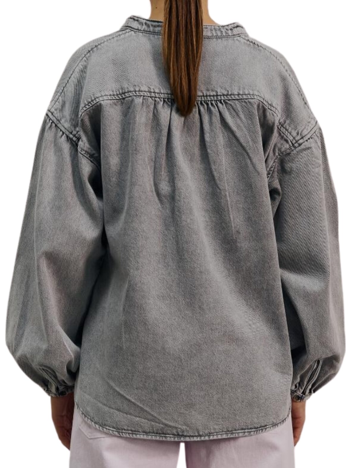 ❤︎ Skøn blød denim skjorte fra WhitBlack med rummeligt fit. WBLPenelope Denim Tunic skjorten har lange voluminøse ærmer og en rund hals med v-slids. Forneden er den buet og har et slids i hver side.