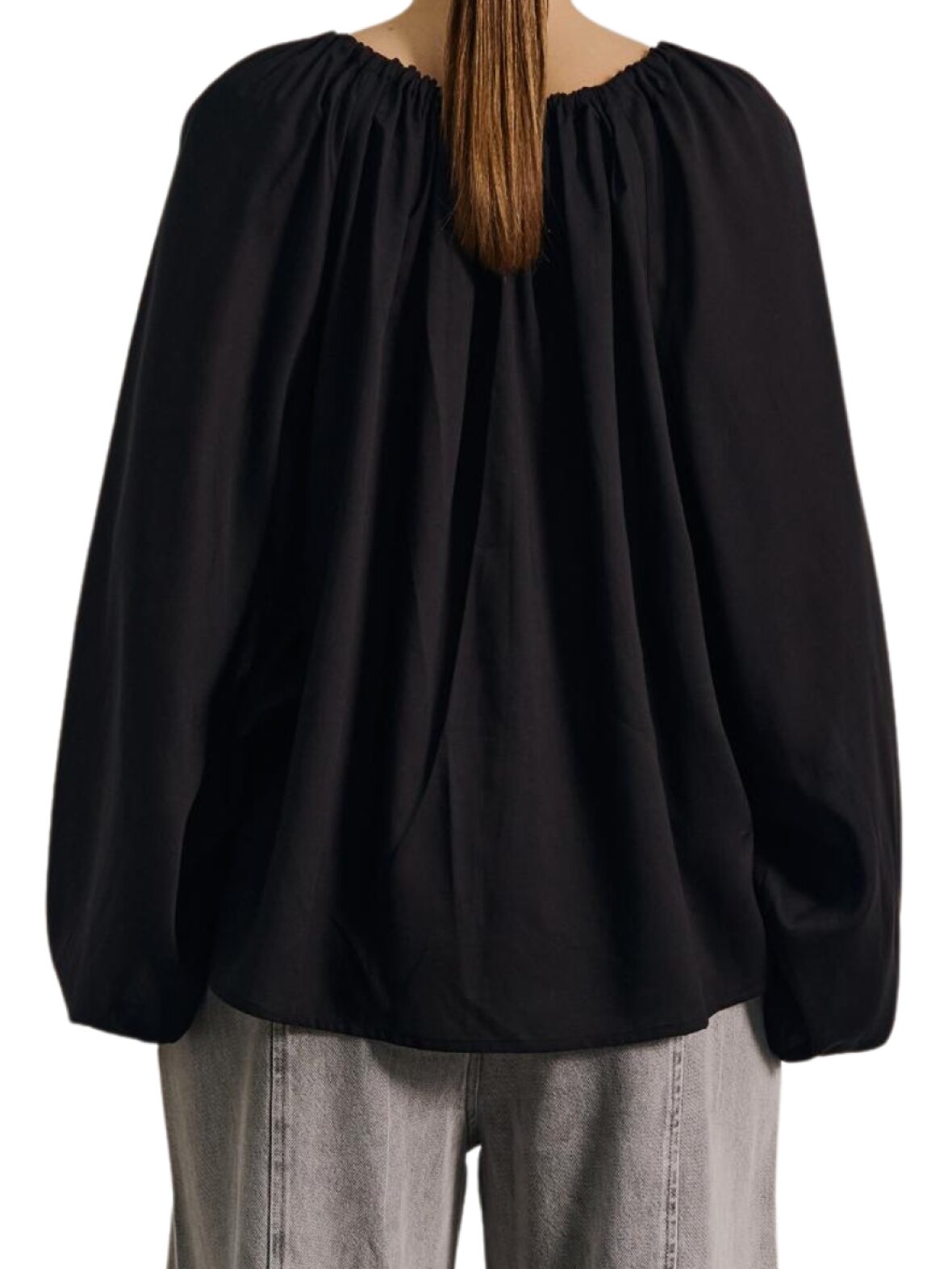 ❤︎ Skøn afslappet top med rummeligt fit fra WithBlack i en let kvalitet. WBLRio Wide Sleeve toppen har lange, brede ærmer med elastikkant ved håndleddet. I halsudskæringen har den justerbar snøre og den lukkes med skjult knaplukning foran.