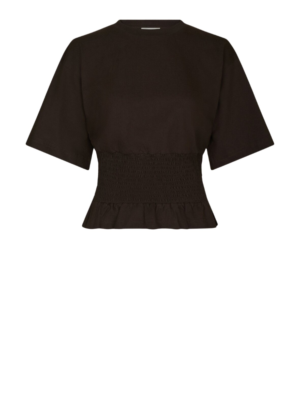 ❤︎ Denne t-shirt fra Neo Noir er det perfekte mix mellem det rå og det feminine. Dray Boxy Smock t-shirten har korte brede ærmer som danner et boxy fit, samt bred smock i talje, som sørger for flatterende figur. Nederst er en fin flæse detalje og t-shirtens hals er rund.