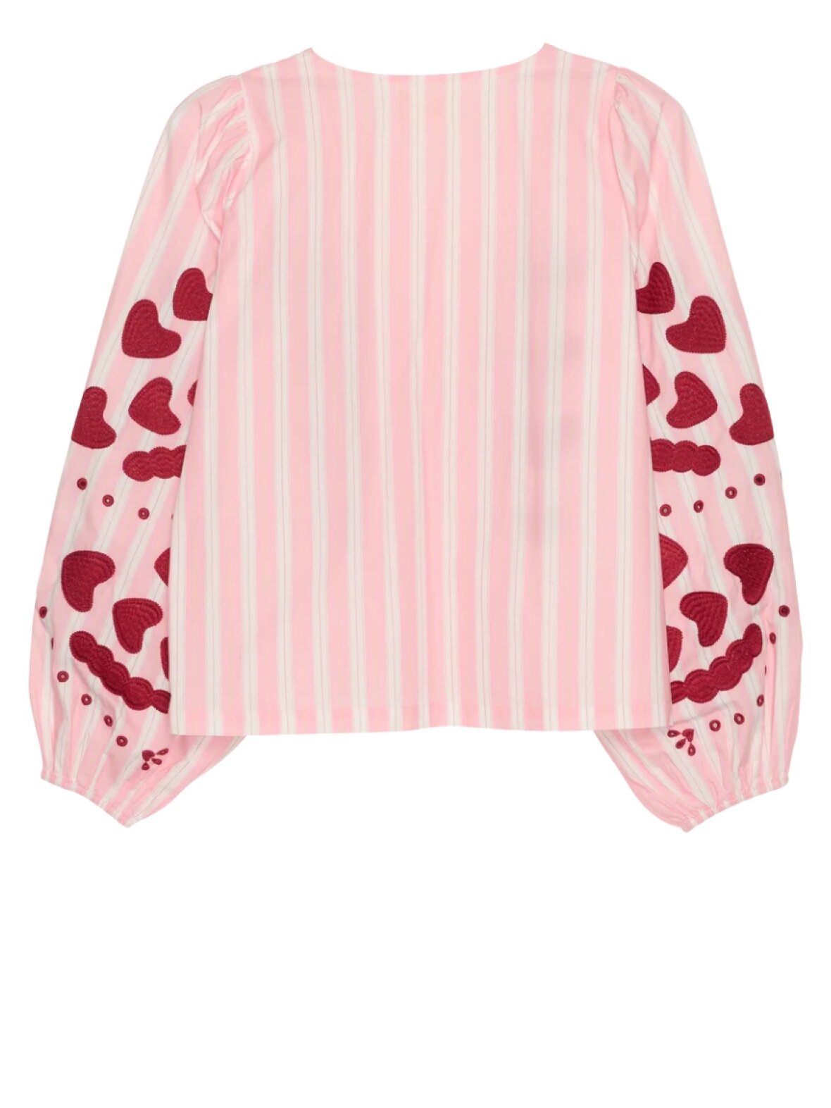 ❤︎ Skøn top fra Sissel Edelbo med bindebånd i front, så den også kan bruges som lille let jakke. Smuk kontrast broderi på front og langs ærmer. Elastik i ærmebund, som giver en flot ballon effekt.