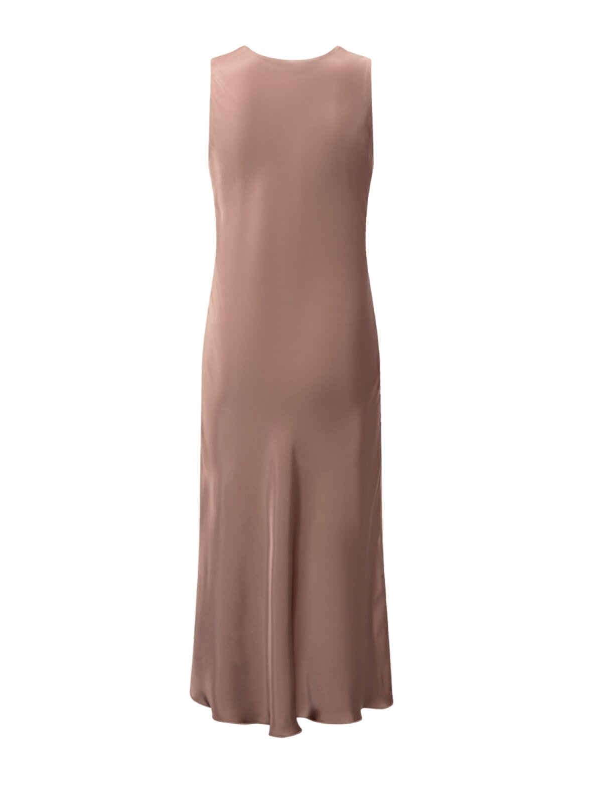 ❤︎ Den smukke Flow Dress fra Karmamia er designet uden ærmer og har en draperet halsudskæring, som giver et feminint look. Kjolen er fremstillet i en let satin kvalitet, og kan styles på mange måder.