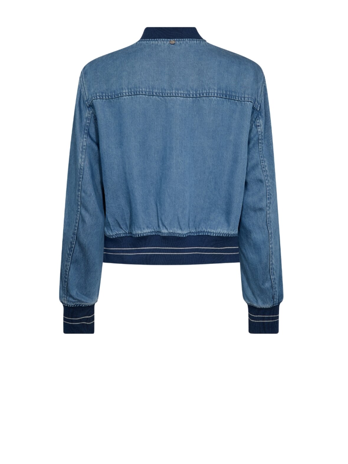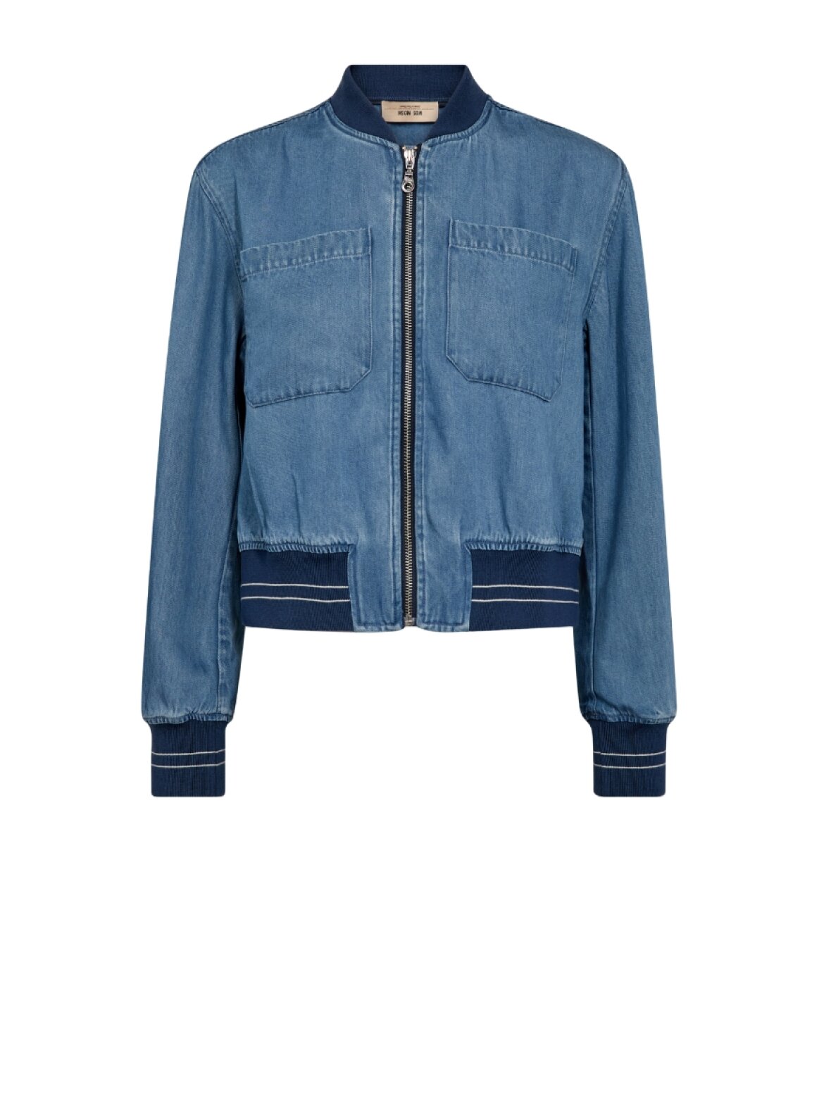 ❤︎ Skøn kort jakke i blød denim fra Mos Mosh. MMCate Onyx jakken er designet med rib-kanter, slids i begge sider, samt to brystlommer. Jakken lukkes foran med en fin sølv lynlås. Pasformen er til den løse side og materialet er super blødt.
