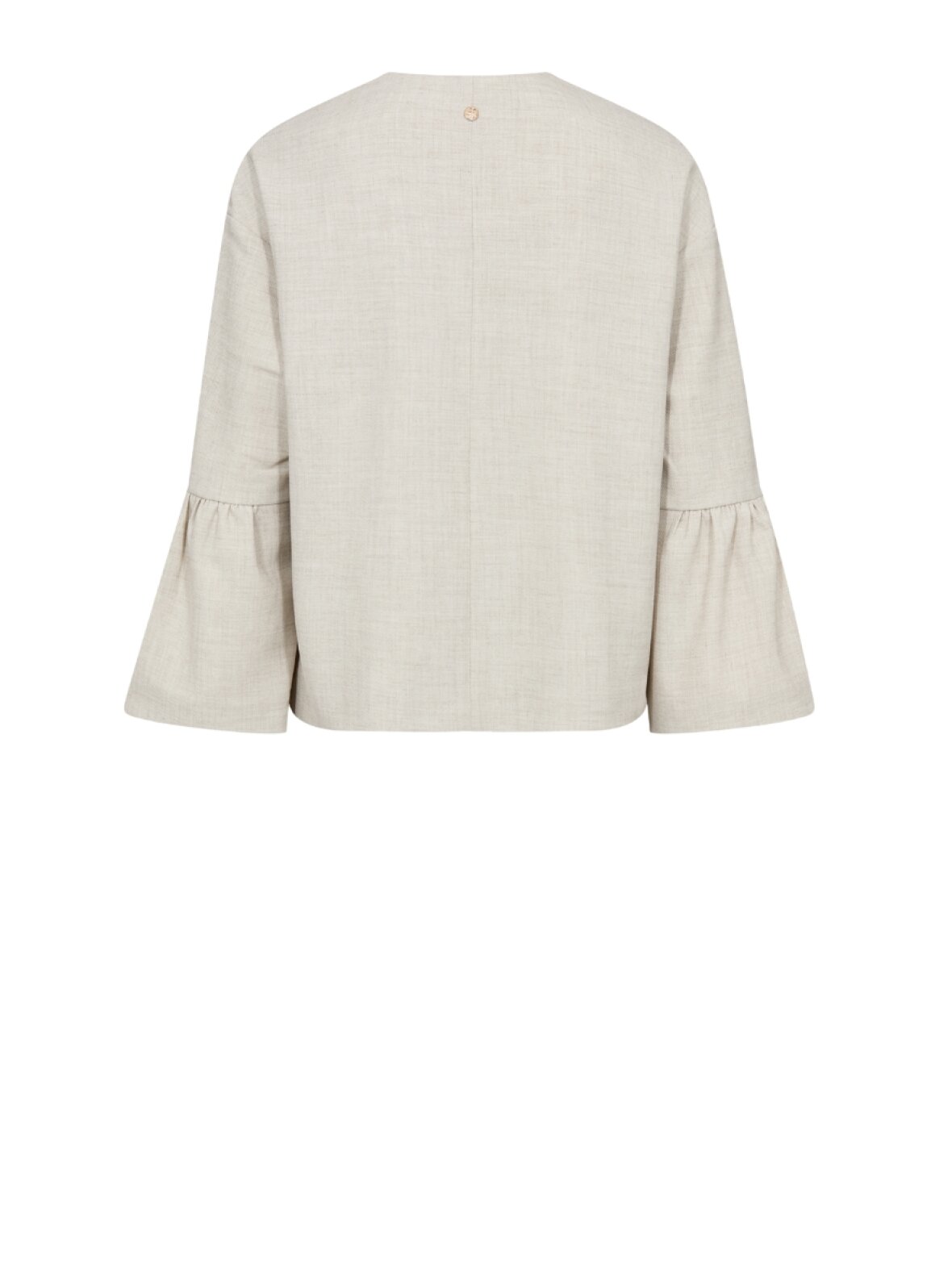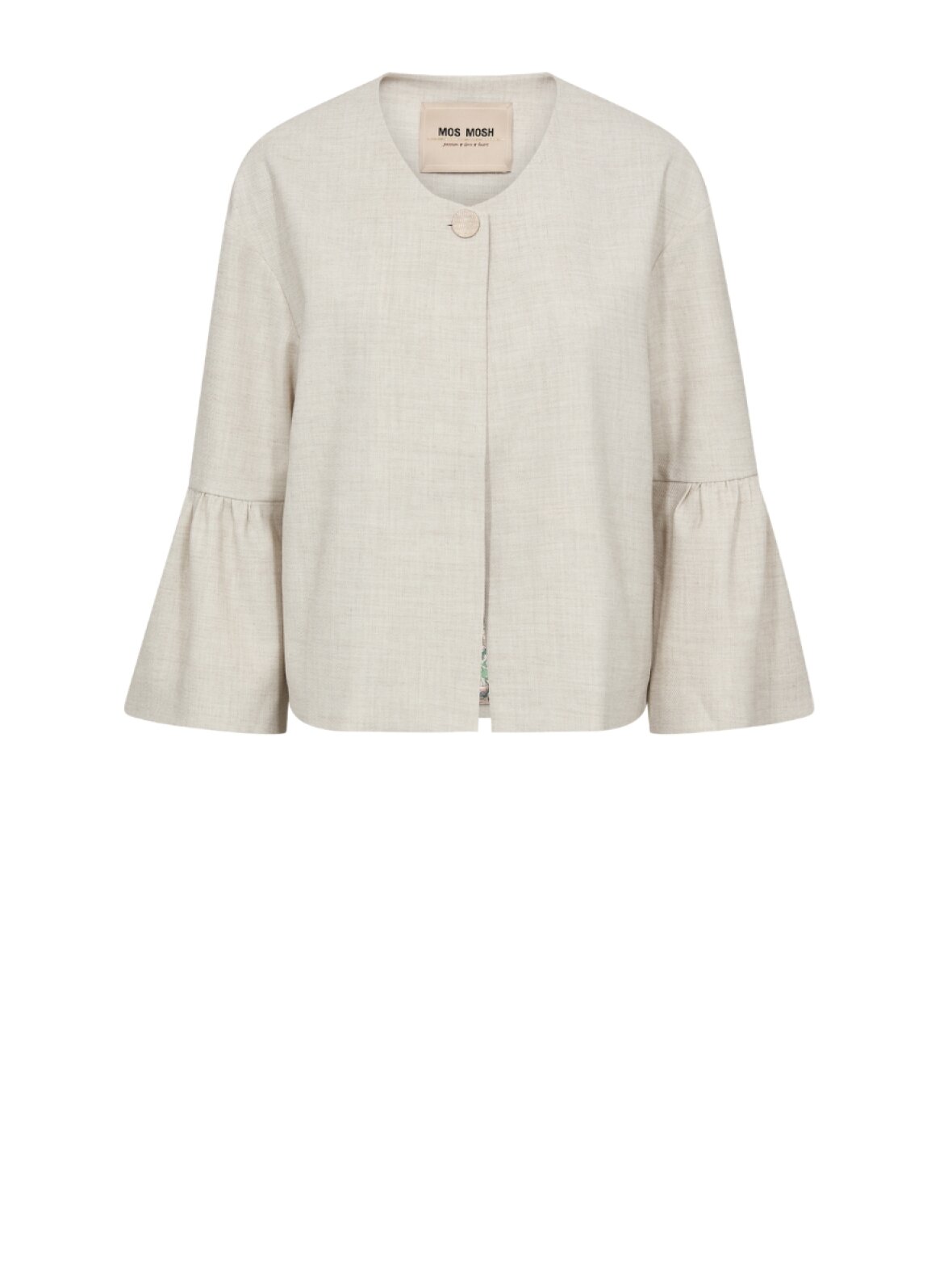 ❤︎ Kort jakke fra Mos Mosh i en flot meleret kvalitet. MMLuca Bellini jakken er designet med 7/8 ærme med en klokkeformet manchet. Den lukkes med en enkelt smuk knap øverst. Indvendigt er der et flot satin, blomster inderfoer.