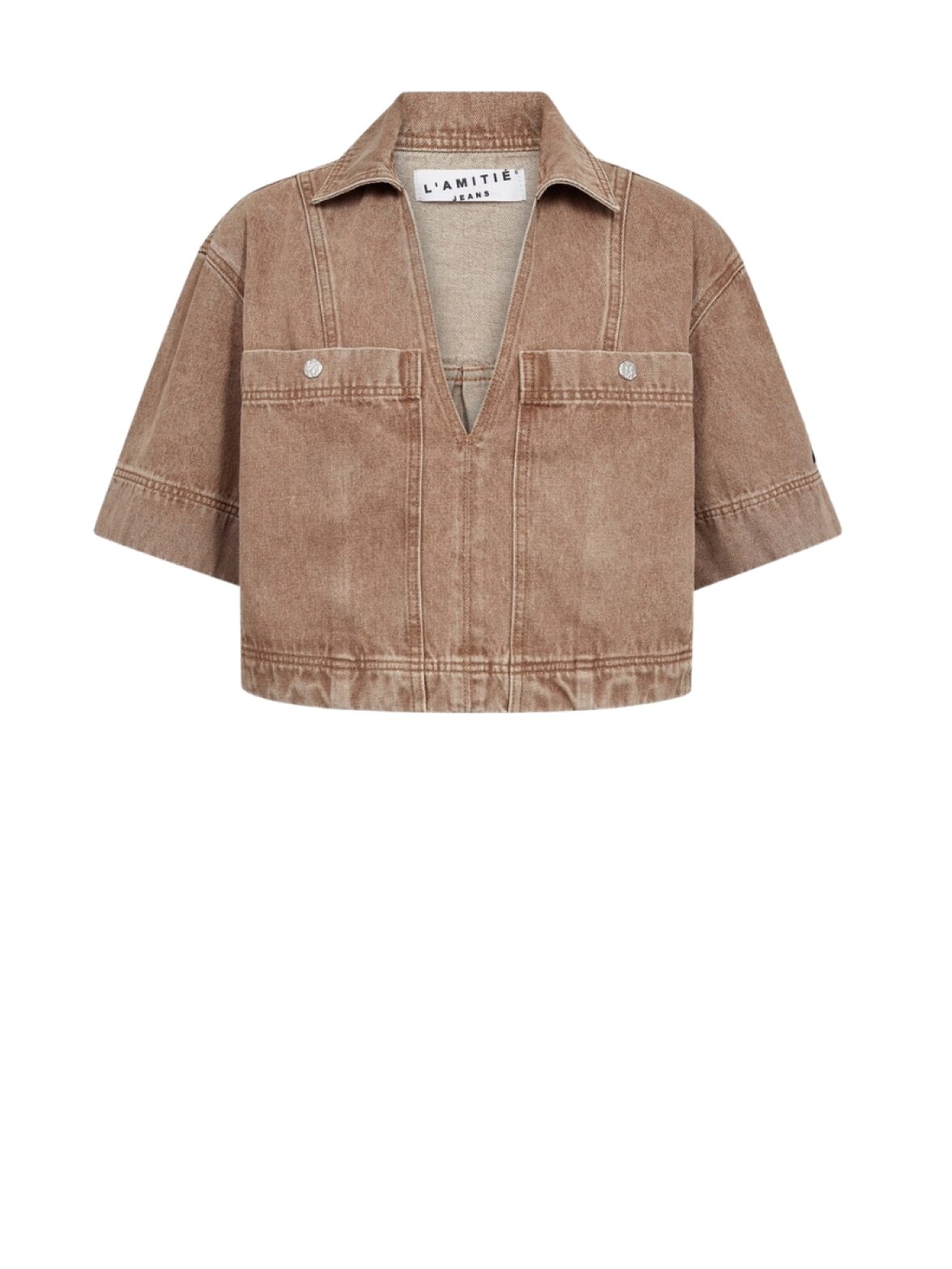 ❤︎ Skøn denim top fra Haute L'amitié med cropped box fit. Drew Denim toppen er designet med korte ærmer, krave samt V-udskæring og store brystlommer. Det bløde denim materiale, gør den super komfortabel.