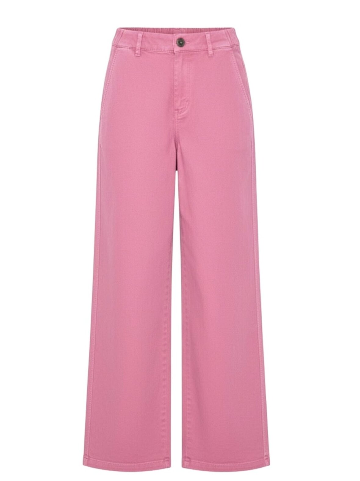 ❤︎ Skønne bukser fra Amaze Cph i blødt strækbart bomuld. Molly bukserne har bæltestropper, elastik bagpå i taljen og lukkes med skjult lynlås og knap. De har sidelommer og et lækkert barrel fit, med vidde i benene.