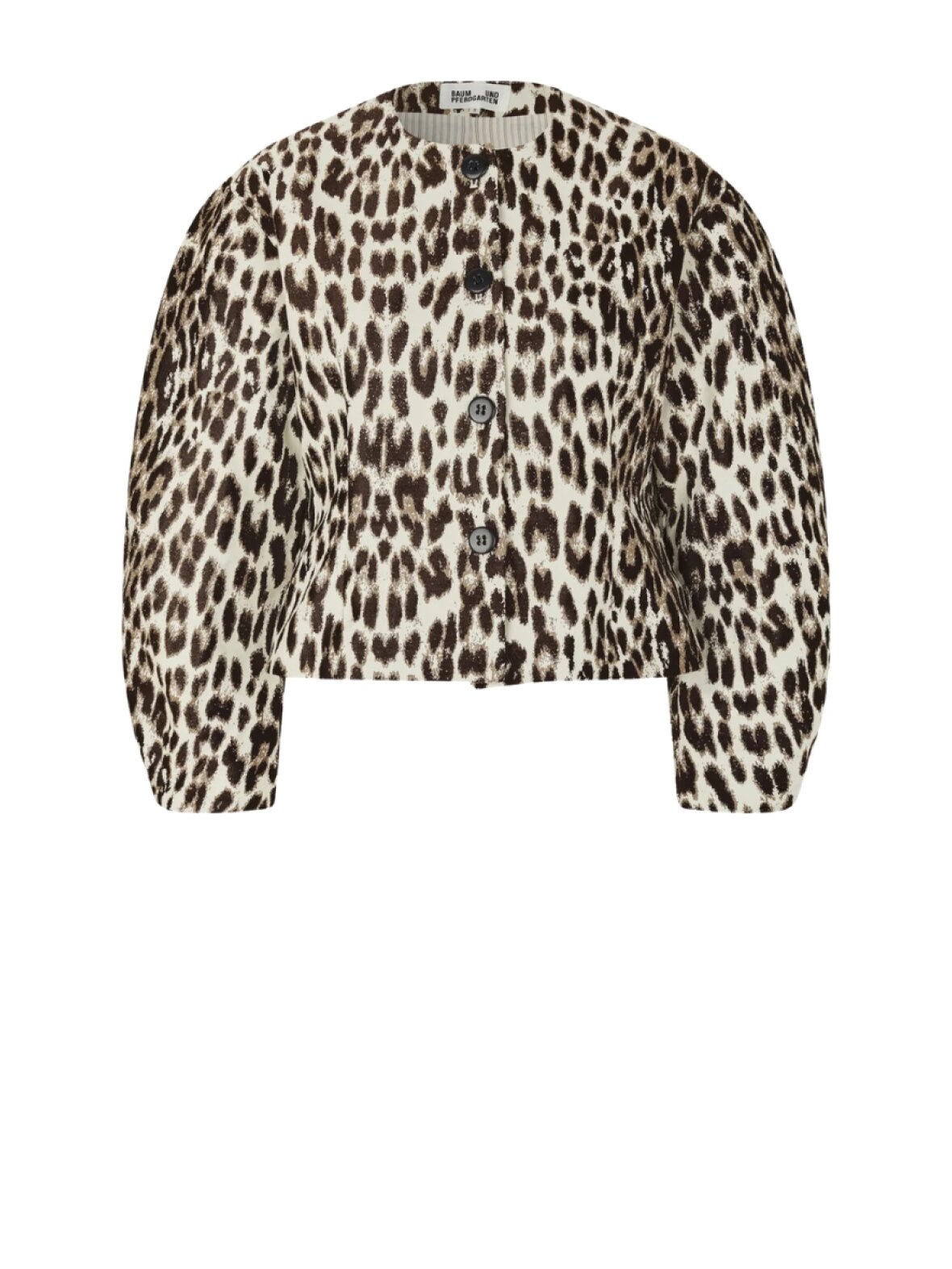 ❤︎ Smuk leopard jakke fra Baum Und Pferdgarten med brede buede ærmer. Bonni jakken har et figursyet snit taljen, en rund hals udskæring og knaplukning foran.