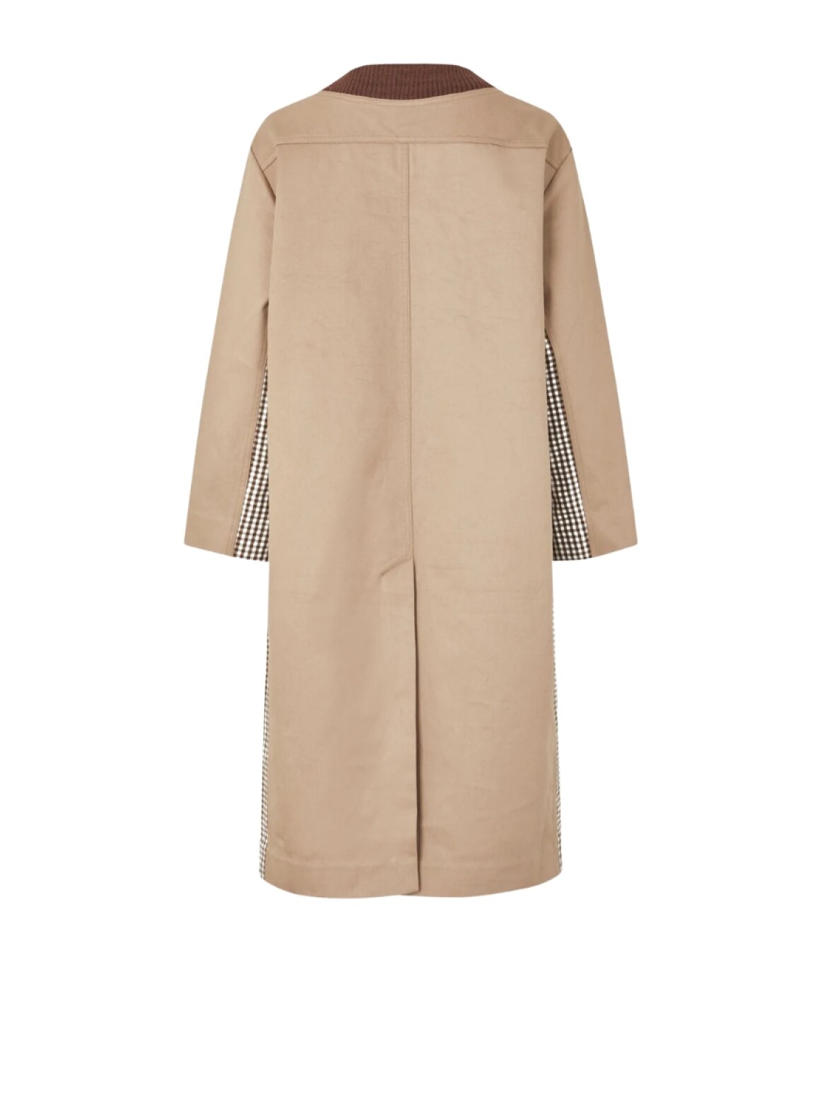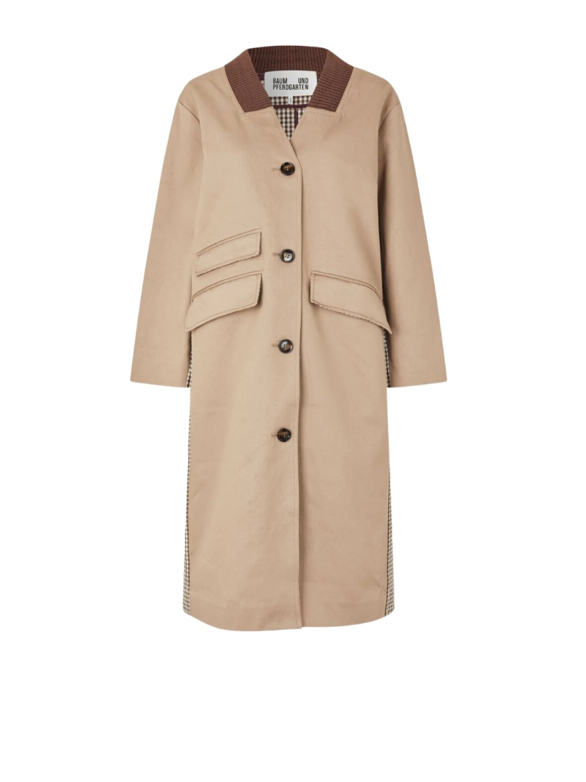 ❤︎ Smuk frakke fra Baum Und Pferdgarten i 100% Økologisk bomuld. Dagny frakken er designet med foer, samt sidepanler i tern, en ribkant i halsudskæringen og slids bagpå. En virkelig skøn frakke med lange ærmer, forlommer og knaplukning foran.