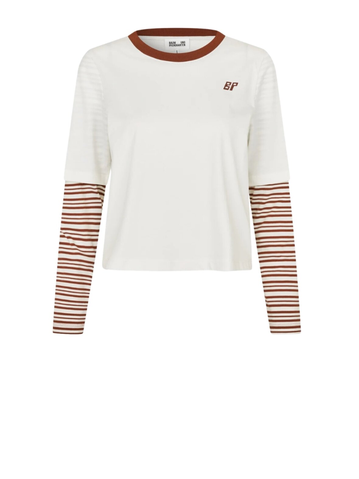 ❤︎ Cool t-shirt fra Baum Und Pferdgarten med løs pasform. Jolin t-shirten har lange stribede ærmer, med et kort ærme udover, for en cool detalje. T-shirten har Baum Und Pferdgartens initialer på brystet og en rund ribhals.