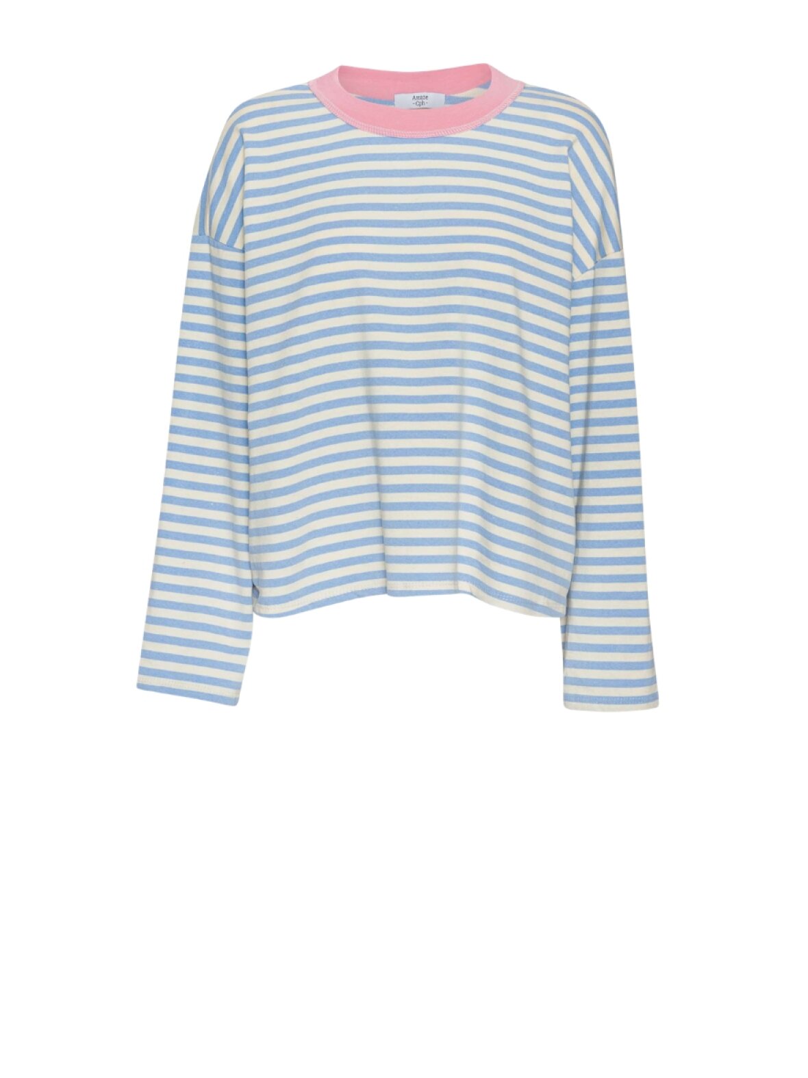 ❤︎ Skøn langærmet bluse fra Amaze Cph med fine striber. Harper blusen er designet med en kontrastfarvet rund hals med rå kant.