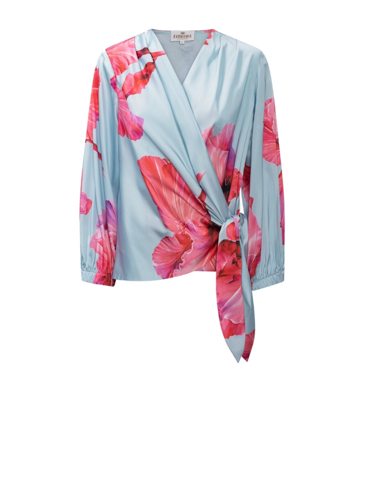 ❤︎ Smuk bluse fra Karmamia med slå om effekt og lange ærmer med elastik ved håndleddet. Elena blusen er fastsyet i den ene side og har et ekstra lag, som giver en flot slå om effekt. En virkelig skøn og feminin bluse i en smukt skinnende satin kvalitet.