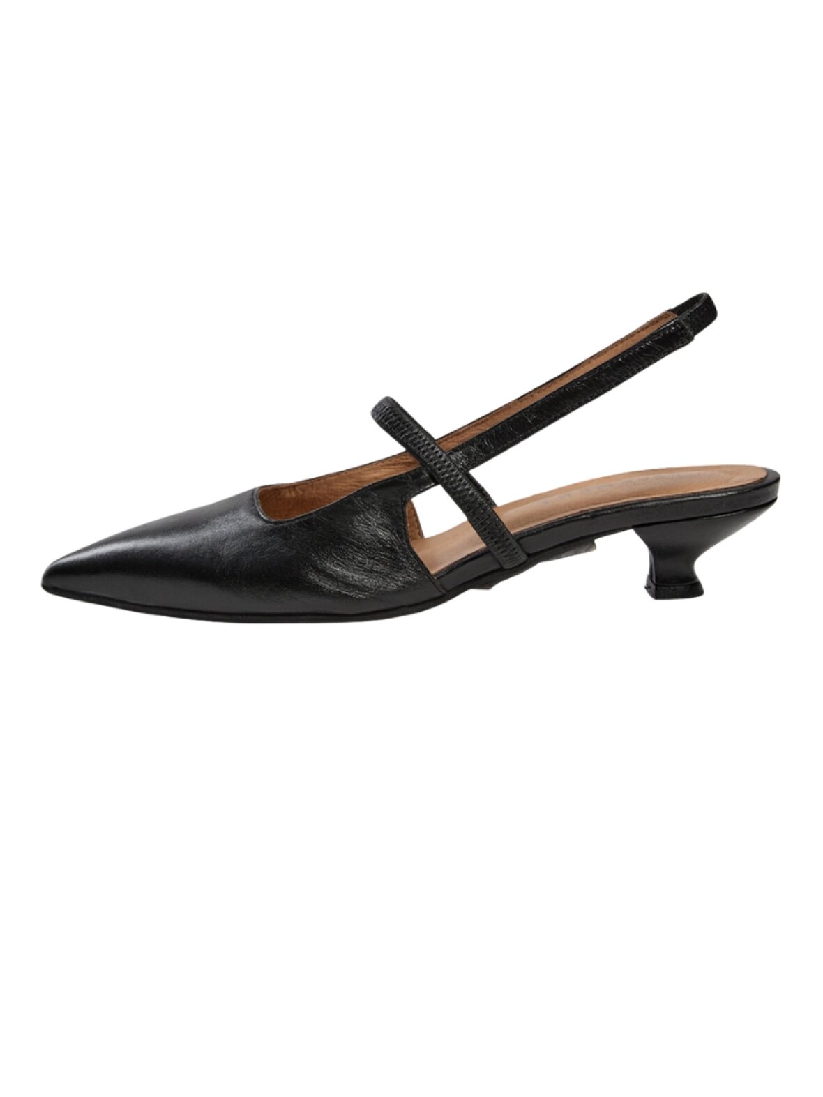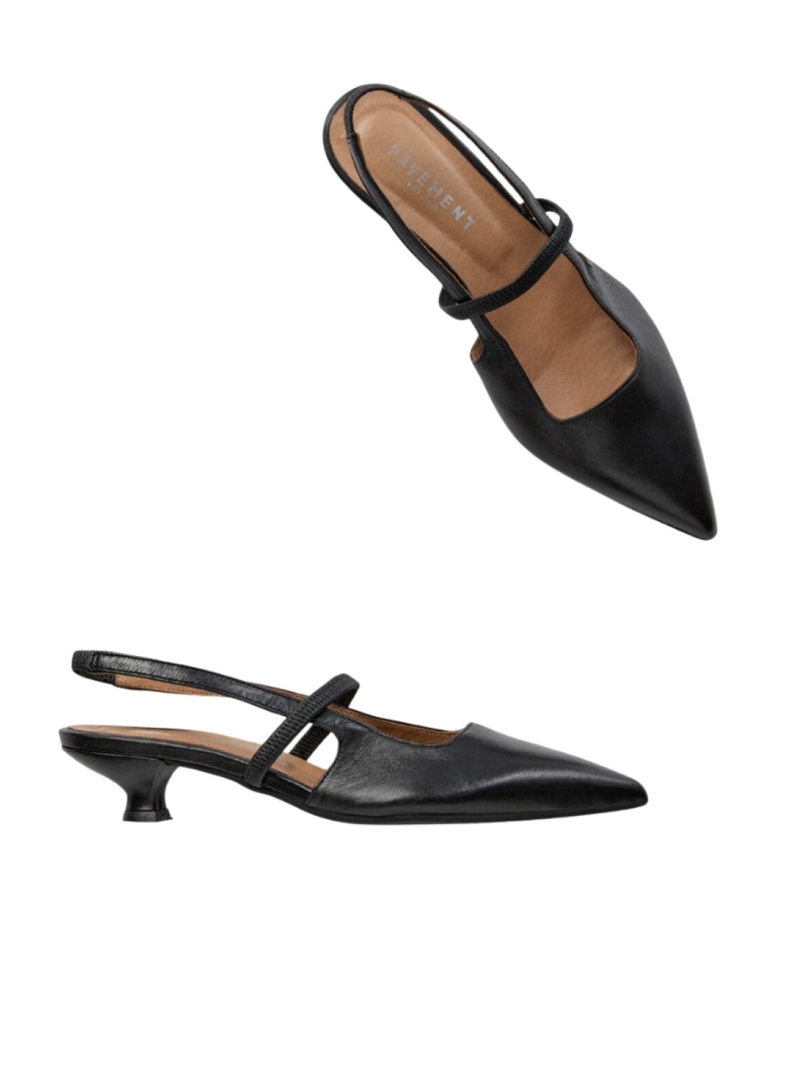 Flot sling back fra Pavement med lille hæl. Aurelia Sling Back skoen har en spids snude og en smal rem omkring hælen, samt henover foden. De er i skønt fleksibelt skind og er super behagelige på.